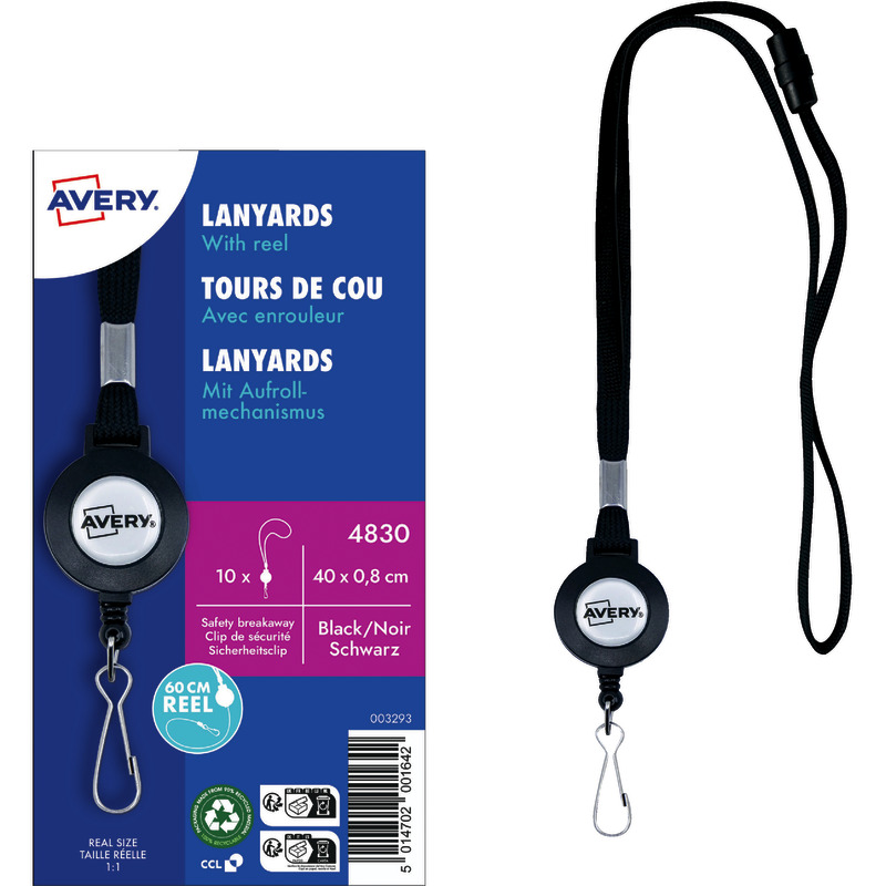 Produktinformationen "AVERY® Zweckform Lanyard mit Sicherheitsverschluss, 60 cm, ausziehbarem Federhaken, Packung: 10"