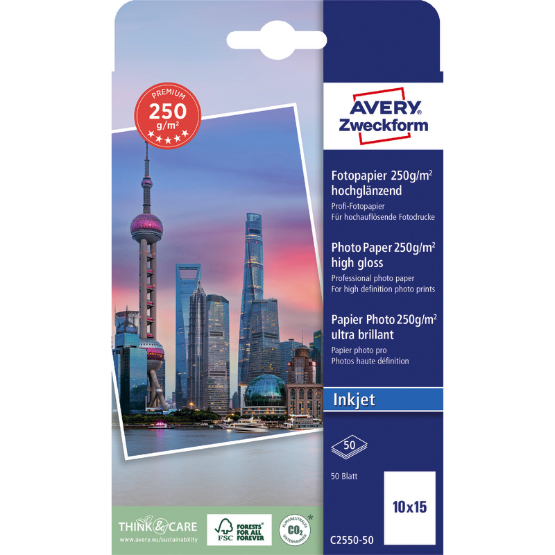 AVERY Zweckform Premium Inkjet Fotopapier, hochglänzend, 10 x15, 250 g/m², Packung: 50 Blatt