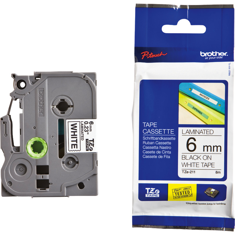 Produktinformationen "Brother TZE-211 Schriftbandkassette P-Touch, 6 mm, schwarz/weiß - schwarz / weiß"