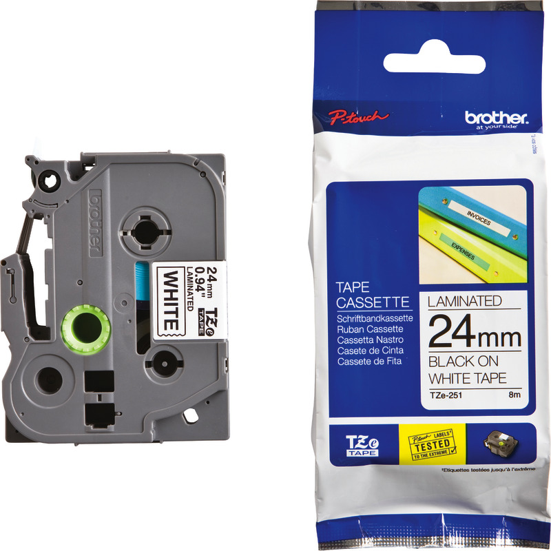 Produktinformationen "Brother TZE-251 Schriftbandkassette P-Touch, 24 mm, schwarz/weiß - schwarz / weiß"