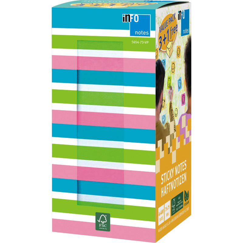 INFO NOTES Value Pack Haftnotizwürfel, 75 x 75 mm, 4 x 400 Blatt - Brillant-Mix