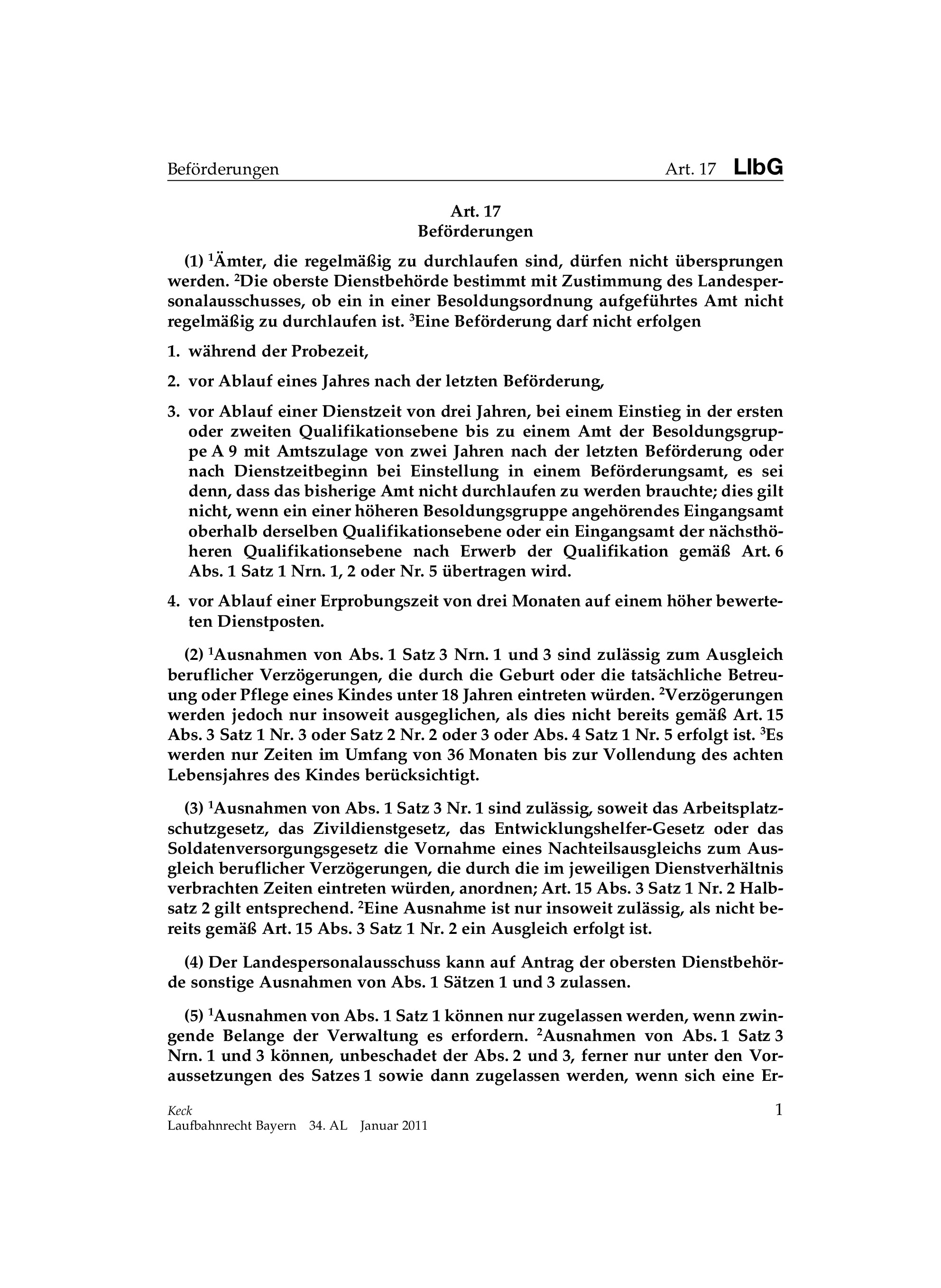 Laufbahnrecht in Bayern - ohne Fortsetzungsbezug