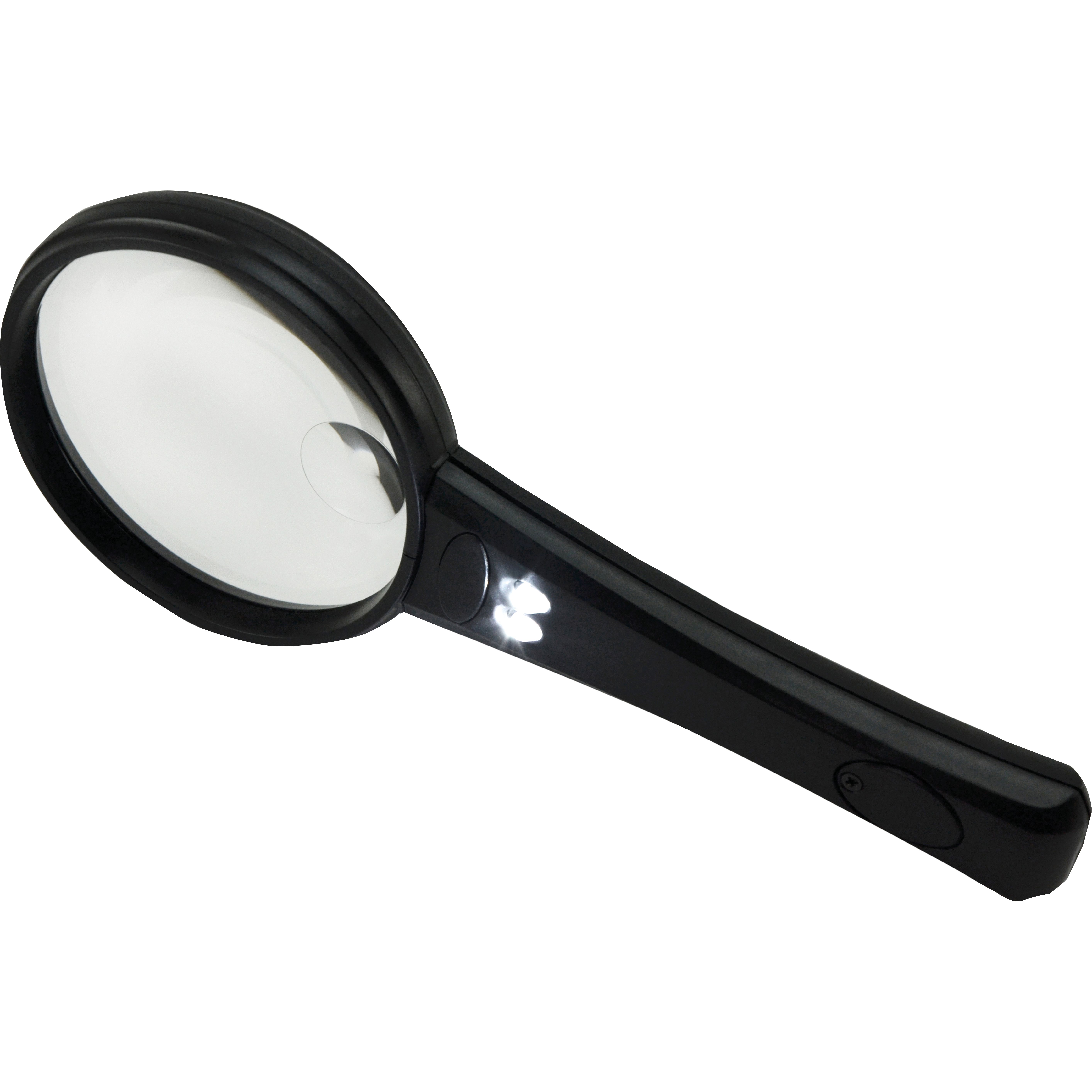 Die multifunktionale Handlupe verfügt über eine 65 mm große Linse mit 3,5-facher Vergrößerung sowie eine 17 mm kleine Linse mit 10-facher Vergrößerung. Diese bi-fokale Lupe ist aus Kunststoff gefertigt und mit zwei LEDs ausgestattet, die für eine bessere Sicht sorgen.