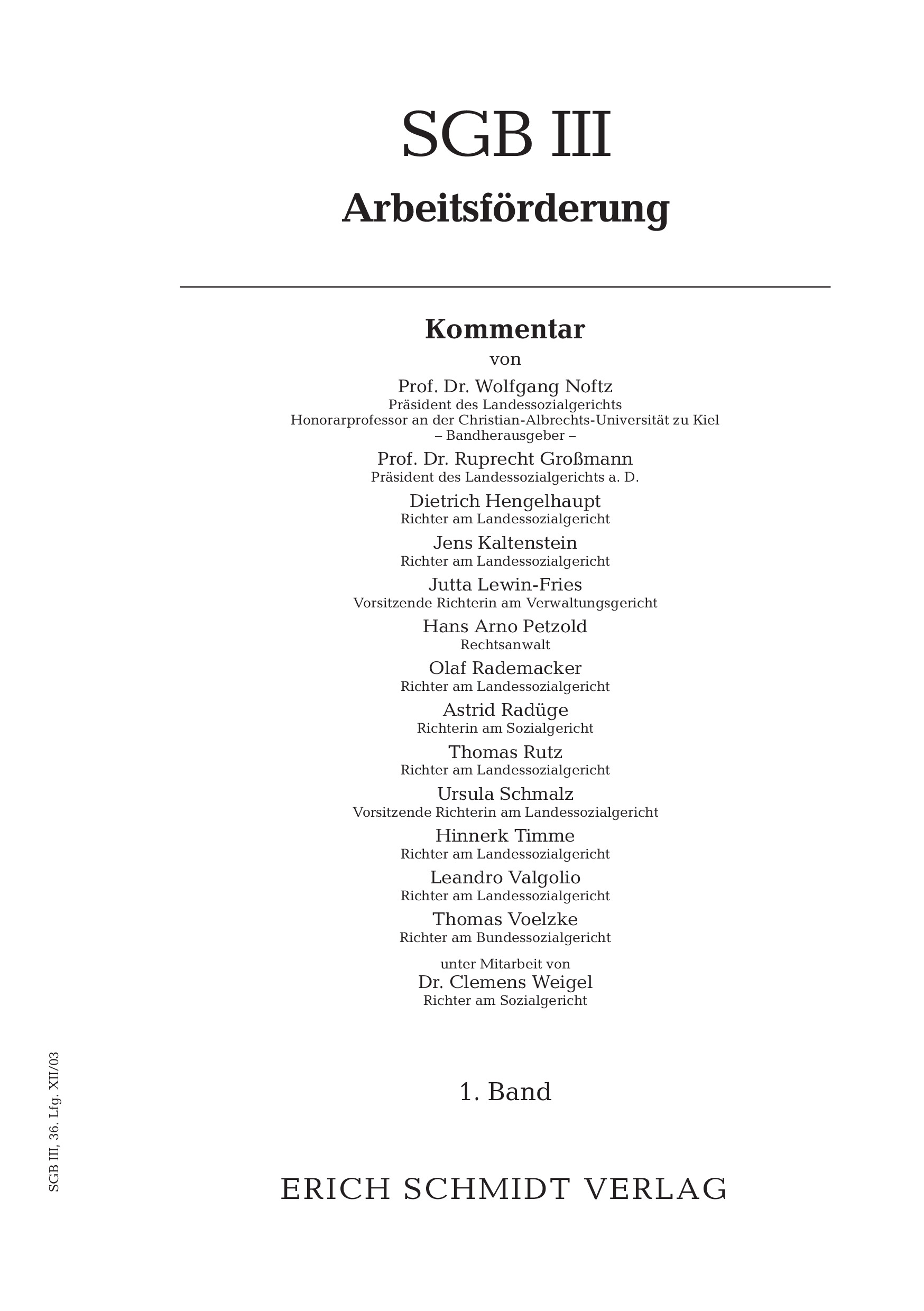 Der Band HAUCK/NOFTZ SGB III, Gesamtherausgeberin Prof. Dr. Dagmar Oppermann, gehört nicht von ungefähr zu den vom Bundessozialgericht meistzitierten Kommentaren.