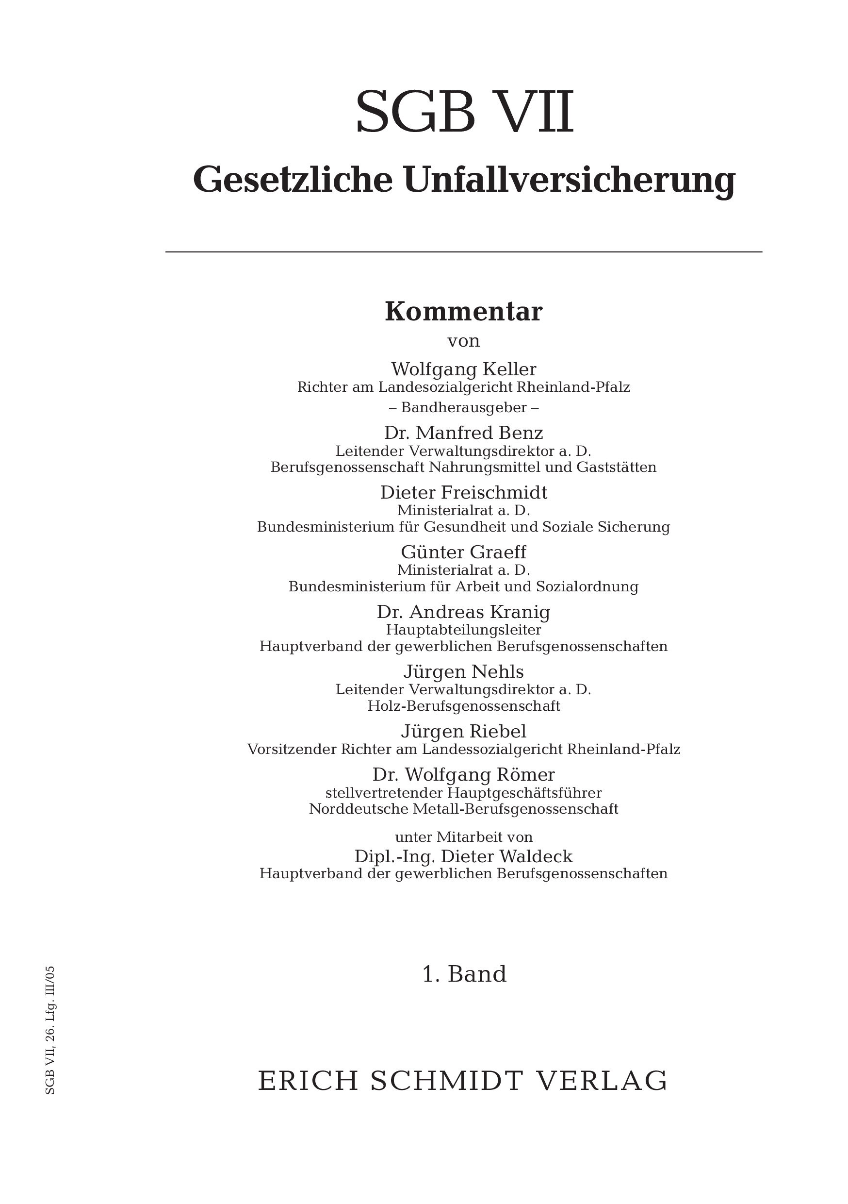 Tragfähige Entscheidungen zu allen Fragen der Gesetzlichen Unfallversicherung treffen Sie mit diesem Kommentarwerk. Das garantieren die praxisorientierten Erörterungen der exzellenten Autoren aus Judikative, Exekutive, Hochschulen und der Gesetzlichen Unfallversicherung um Bandherausgeber Wolfgang Keller, Richter am Landessozialgericht Rheinland-Pfalz a.D. - in jedem Fall.