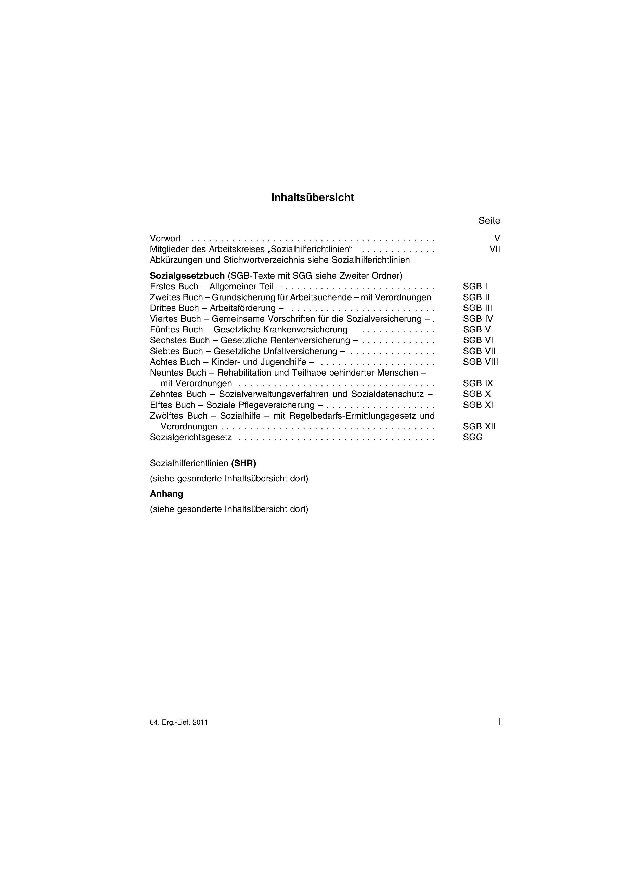 - SGB XII und SGB II, jeweils mit bundesrechtlichen Durchführungsverordnungen,
