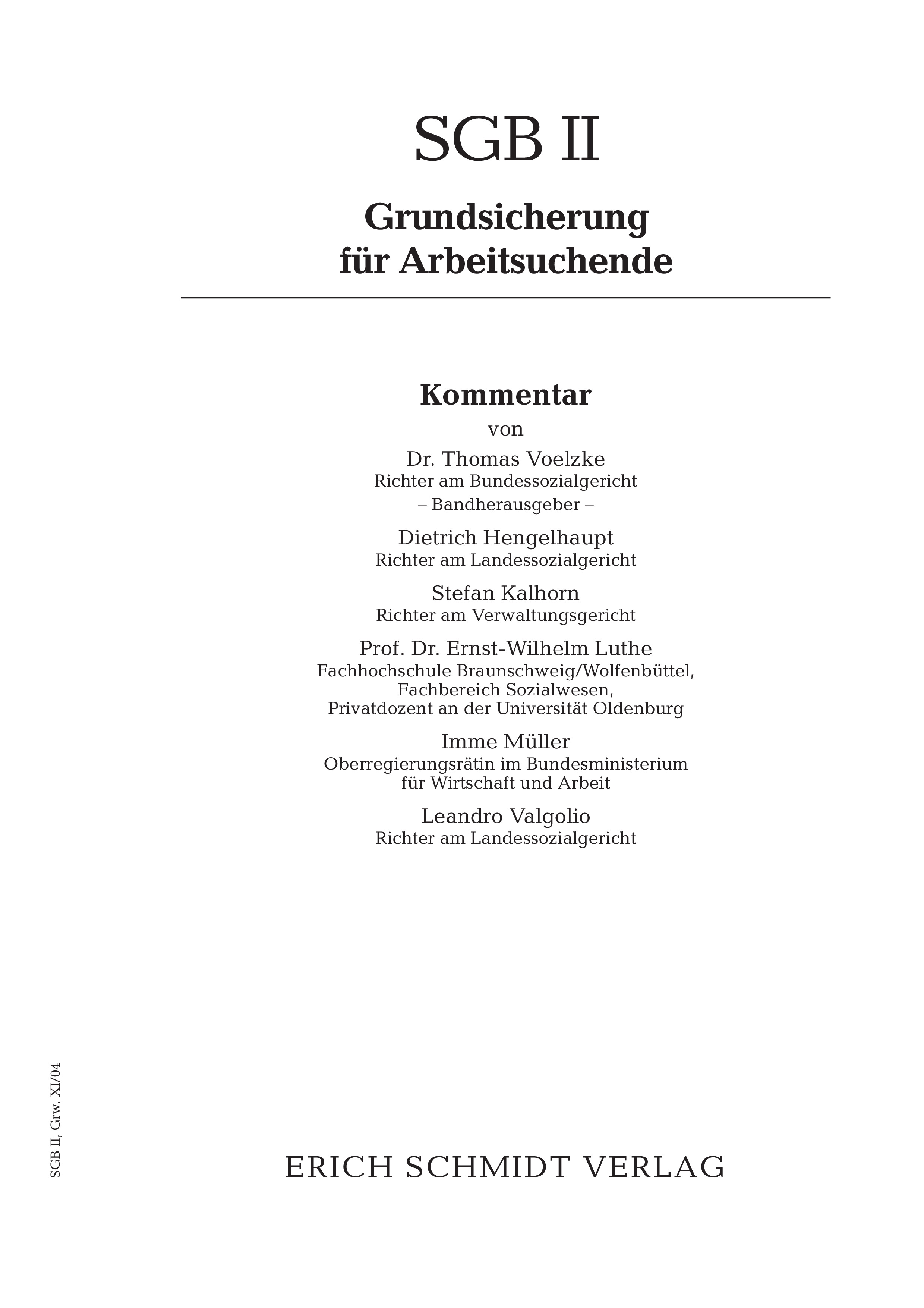 Tragfähige Entscheidungen zu allen Fragen der Grundsicherung für Arbeitsuchende treffen Sie mit diesem Kommentarwerk. Das garantieren die praxisorientierten Erörterungen der exzellenten Autoren aus Judikative, Exekutive und Hochschulen um Band herausgeber Prof. Dr. Thomas Voelzke, Vizepräsident des Bundessozialgerichts, Honorarprofessor an der Humboldt-Universität zu Berlin - in jedem Fall.