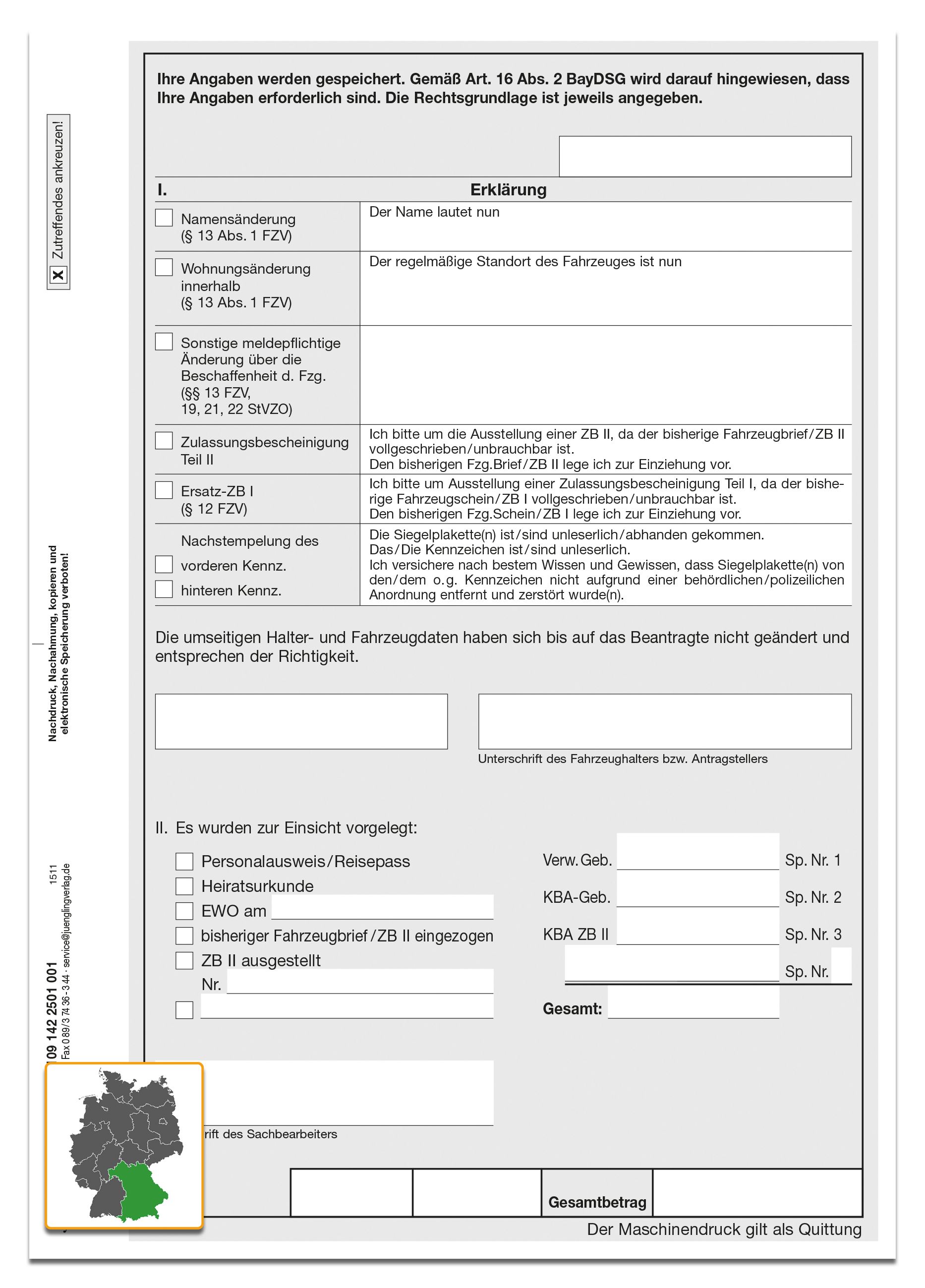 - Änderungserklärung mit Einverständniserklärung für Bayern im Format 148 x 210 (DIN A5)