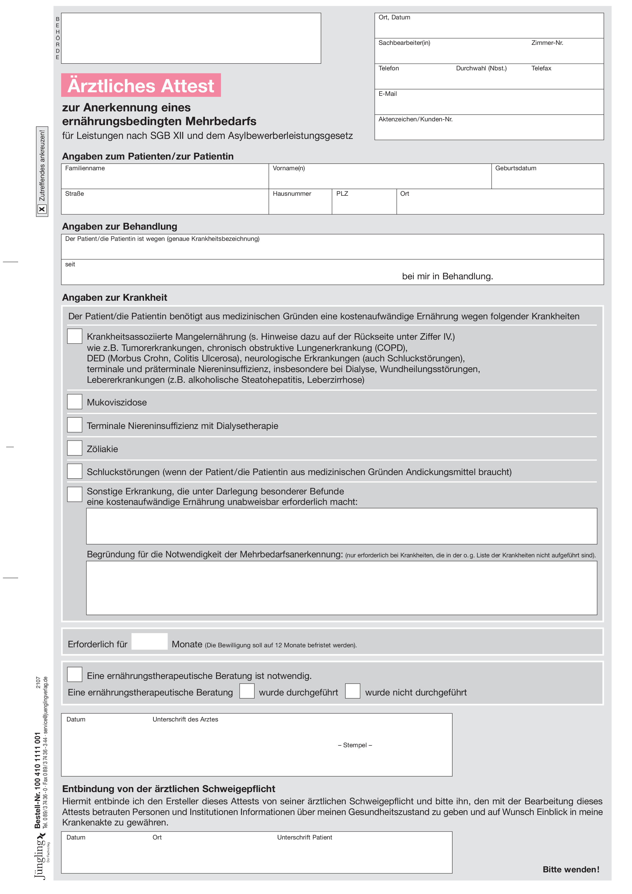 Produktinformationen "Ärztliches Attest für ernährungsbedingten Mehrbedarf"