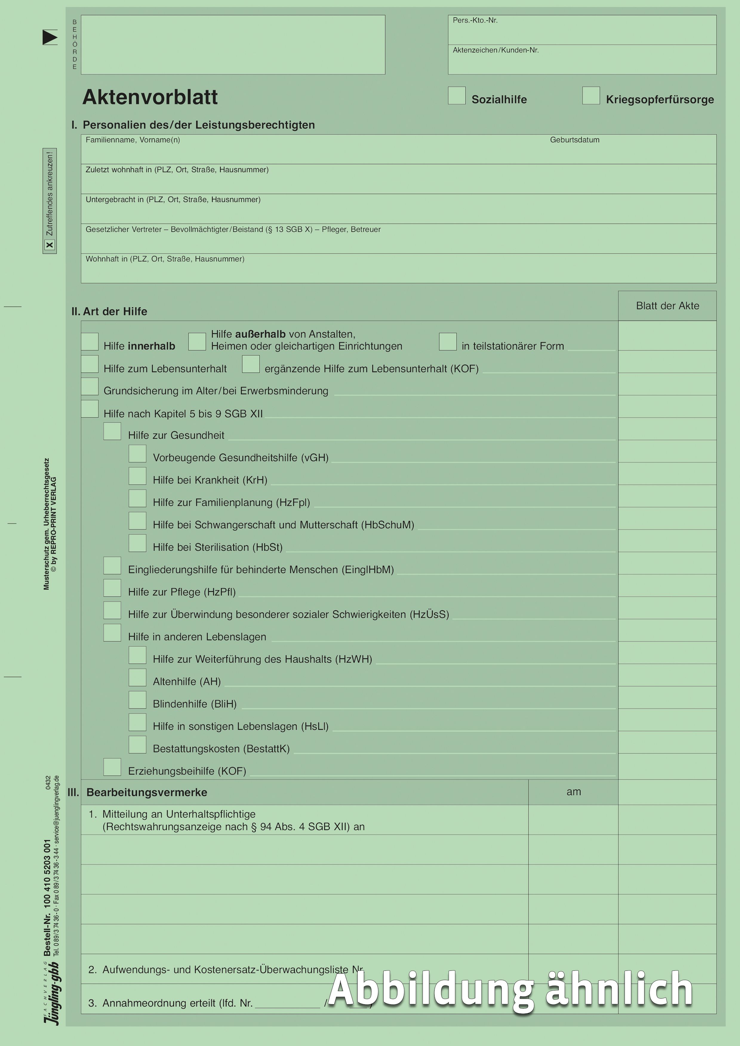 Produktinformationen "Aktenvorblatt SGB XII / KOF, A4, grün"