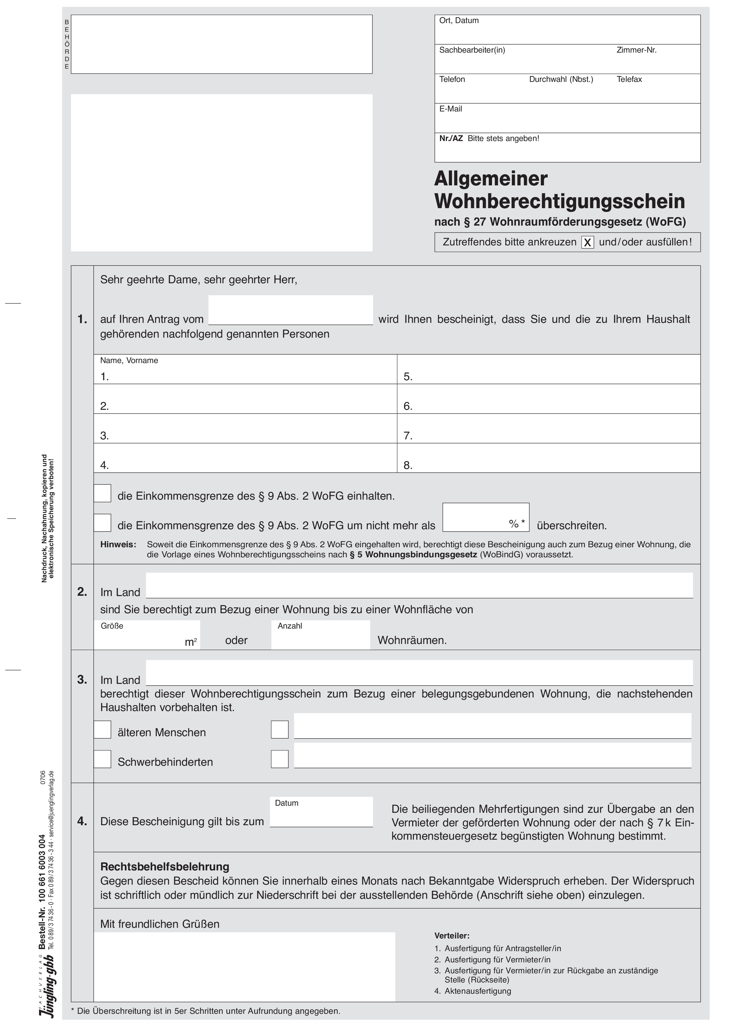Allgemeiner Wohnberechtigungsschein, A4 4-fach Formularsatz