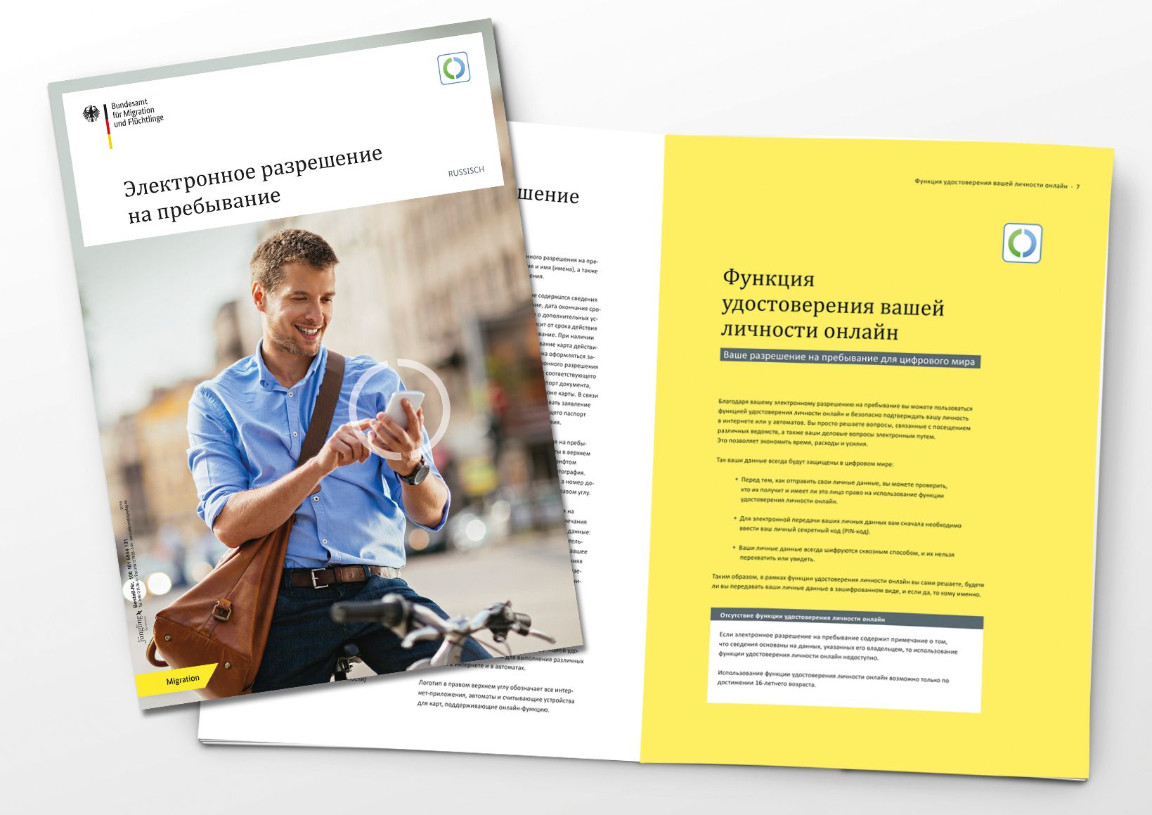 Diese Broschüre richtet sich an alle Ausländerbehörden und öffentlichen Stellen, die den russischsprachigen Bürgern Informationen über den elektronischen Aufenthaltstitel bereitstellen möchten. Mit dieser Broschüre werden die gesetzlichen Vorgaben des § 78 Abs. 5 AufenthG erfüllt und den Bürgern alle notwendigen Informationen in ihrer Muttersprache zur Verfügung gestellt.