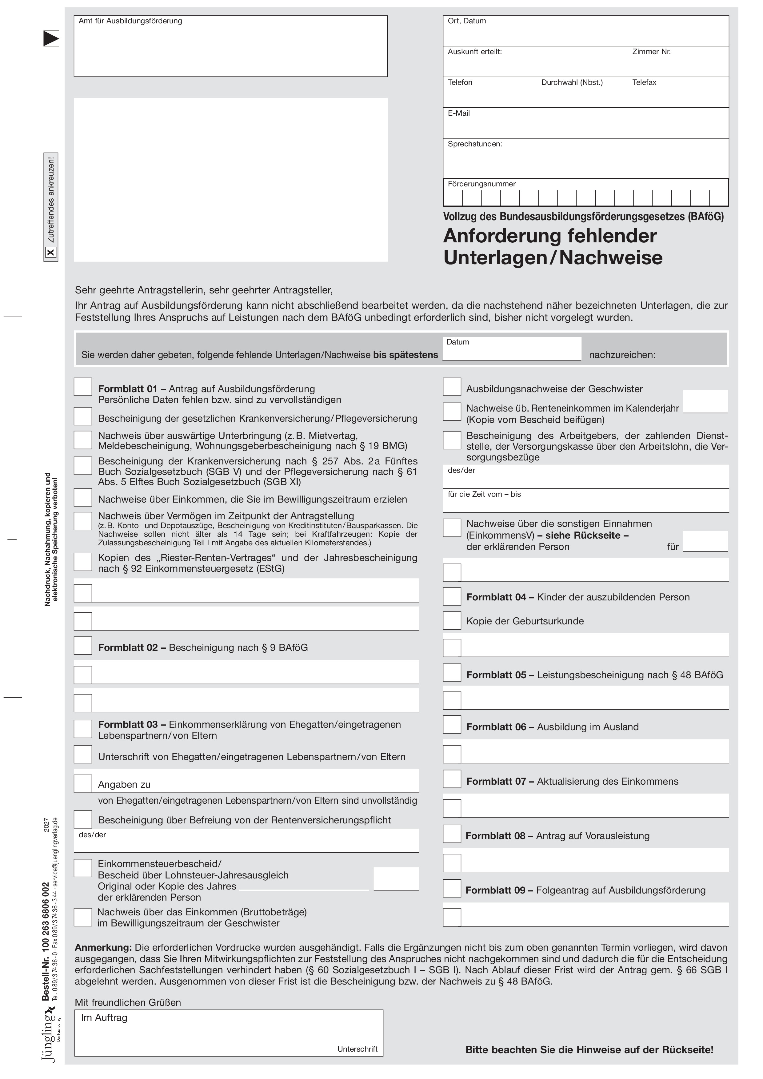 Produktinformationen "Anforderung fehlender Unterlagen, A4 2-fach"