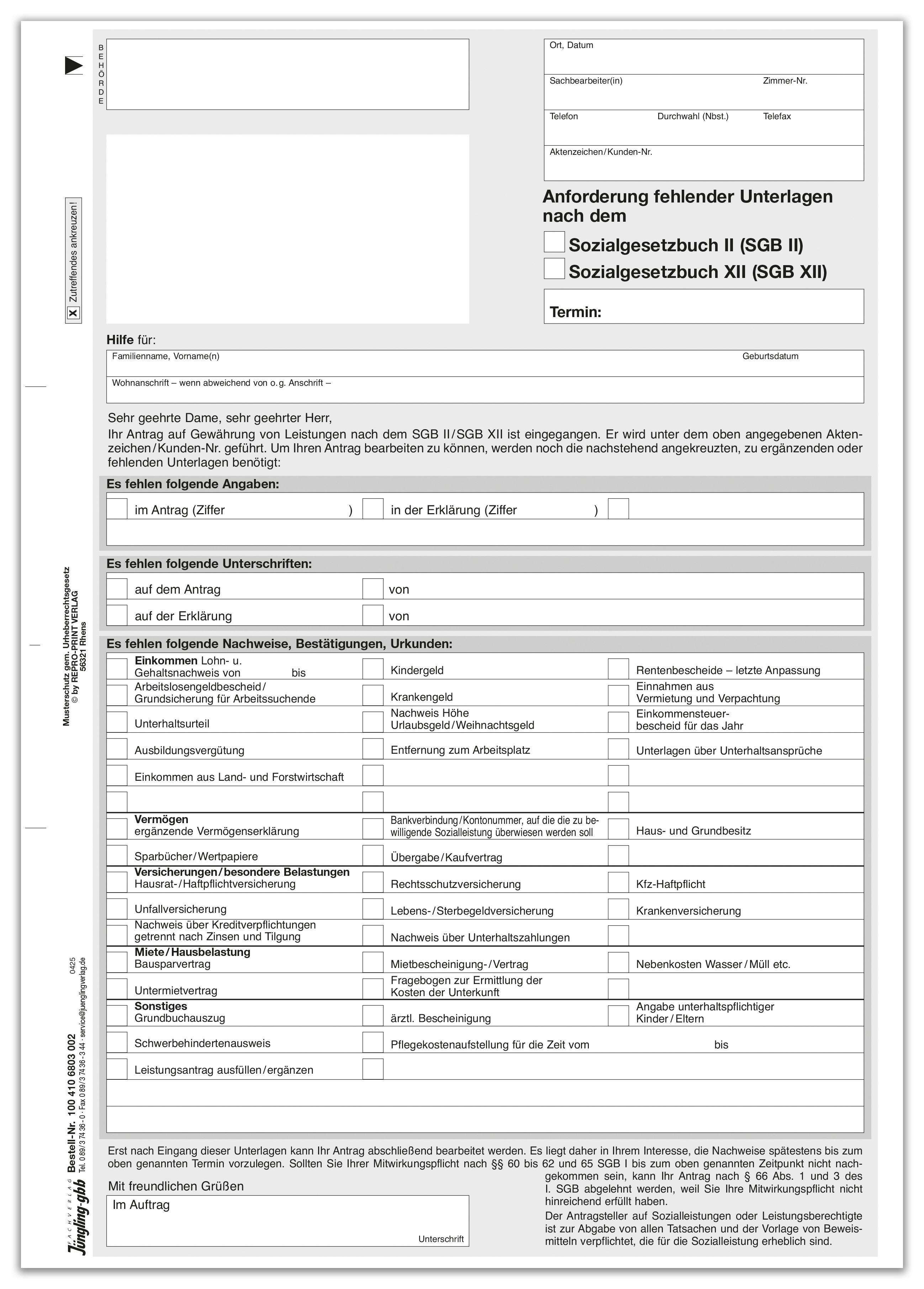 Produktinformationen "Anforderung fehlender Unterlagen nach SGB II, SGB XII"