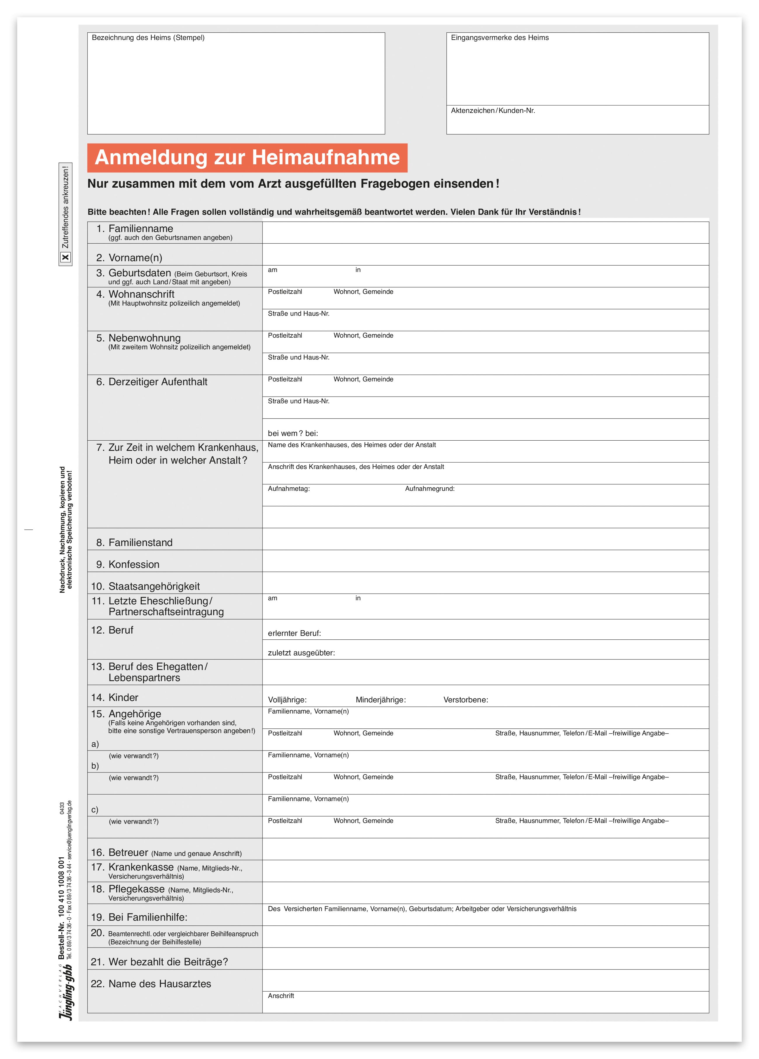 Anmeldung zur Heimaufnahme, A4