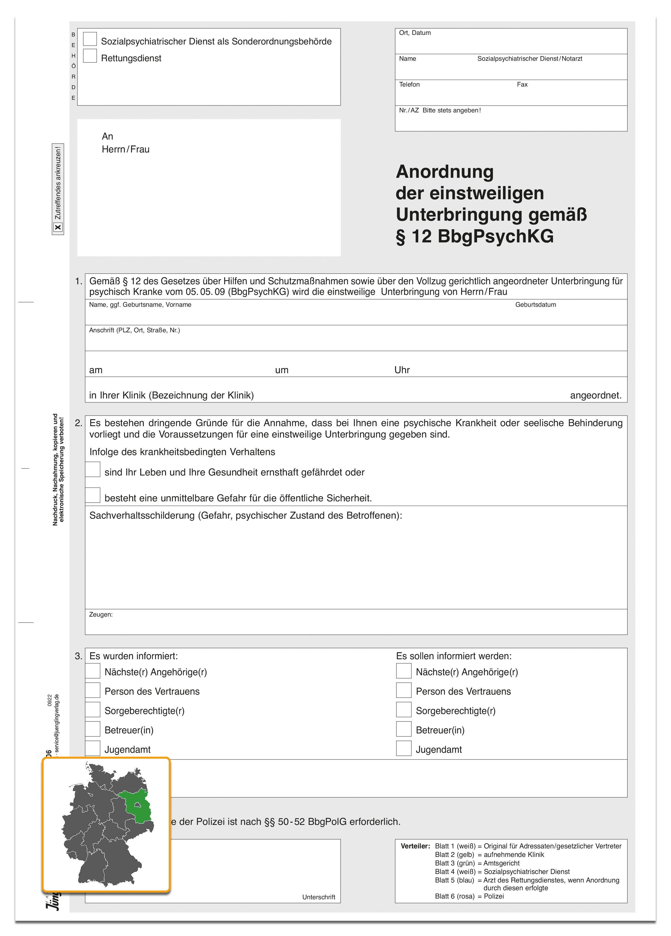 Anordnung sofortige Unterbringung psychisch auffälliger Personen (Brandenburg), A4, 6fach
