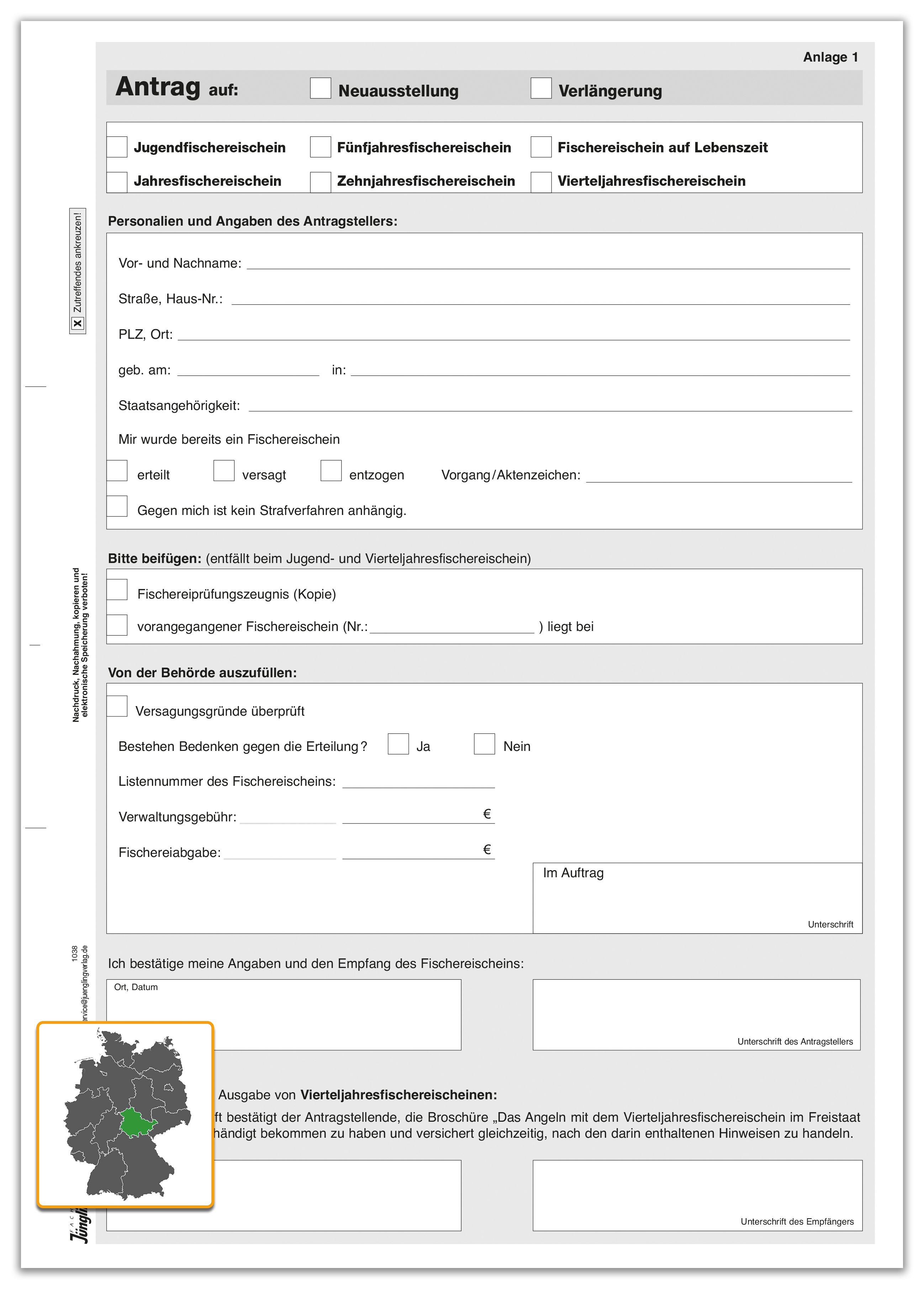 Produktinformationen "Antrag Fischereischein Thüringen, DIN A4"