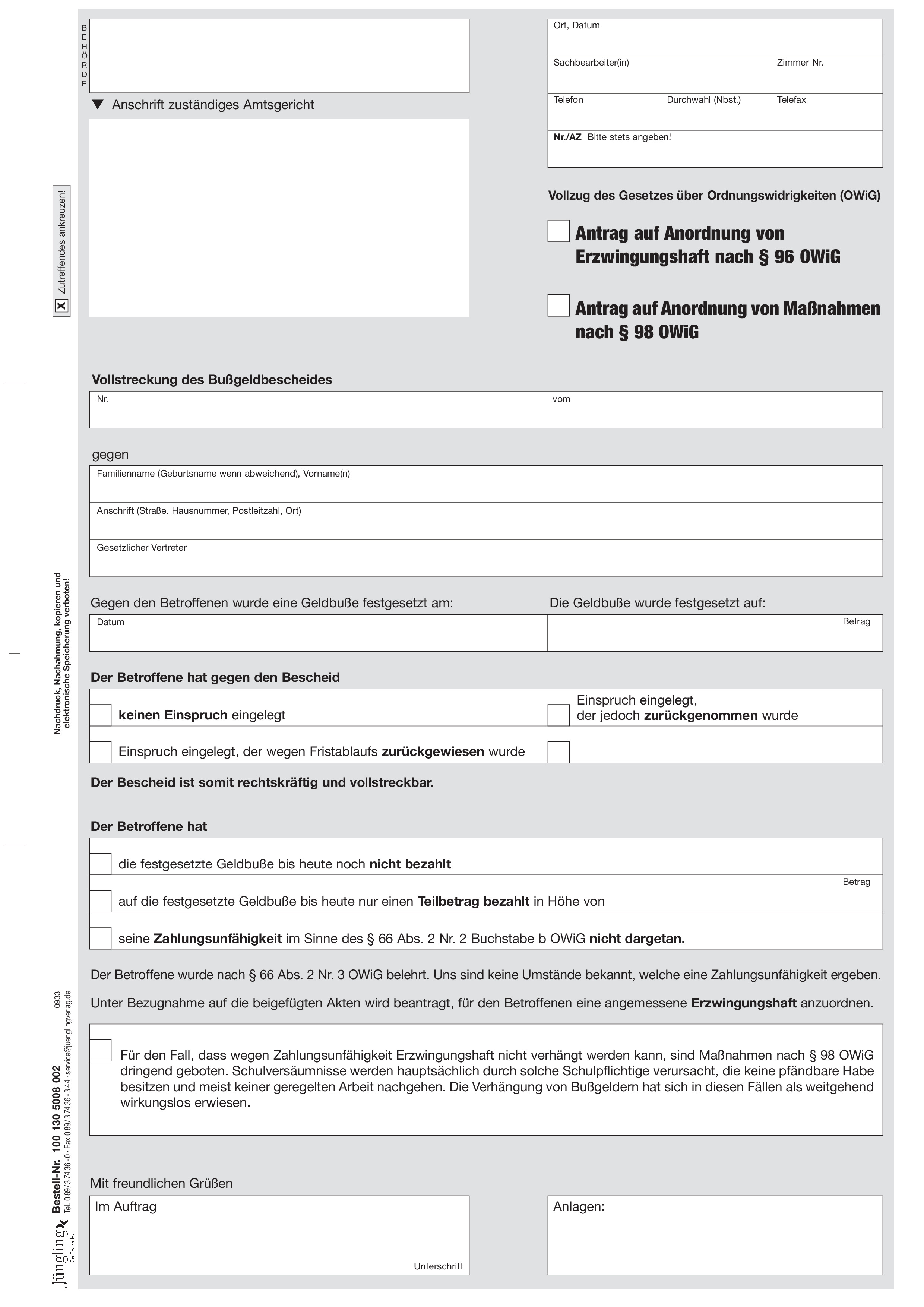 Antrag auf Anordnung Erzwingungshaft, A4 2-fach SD