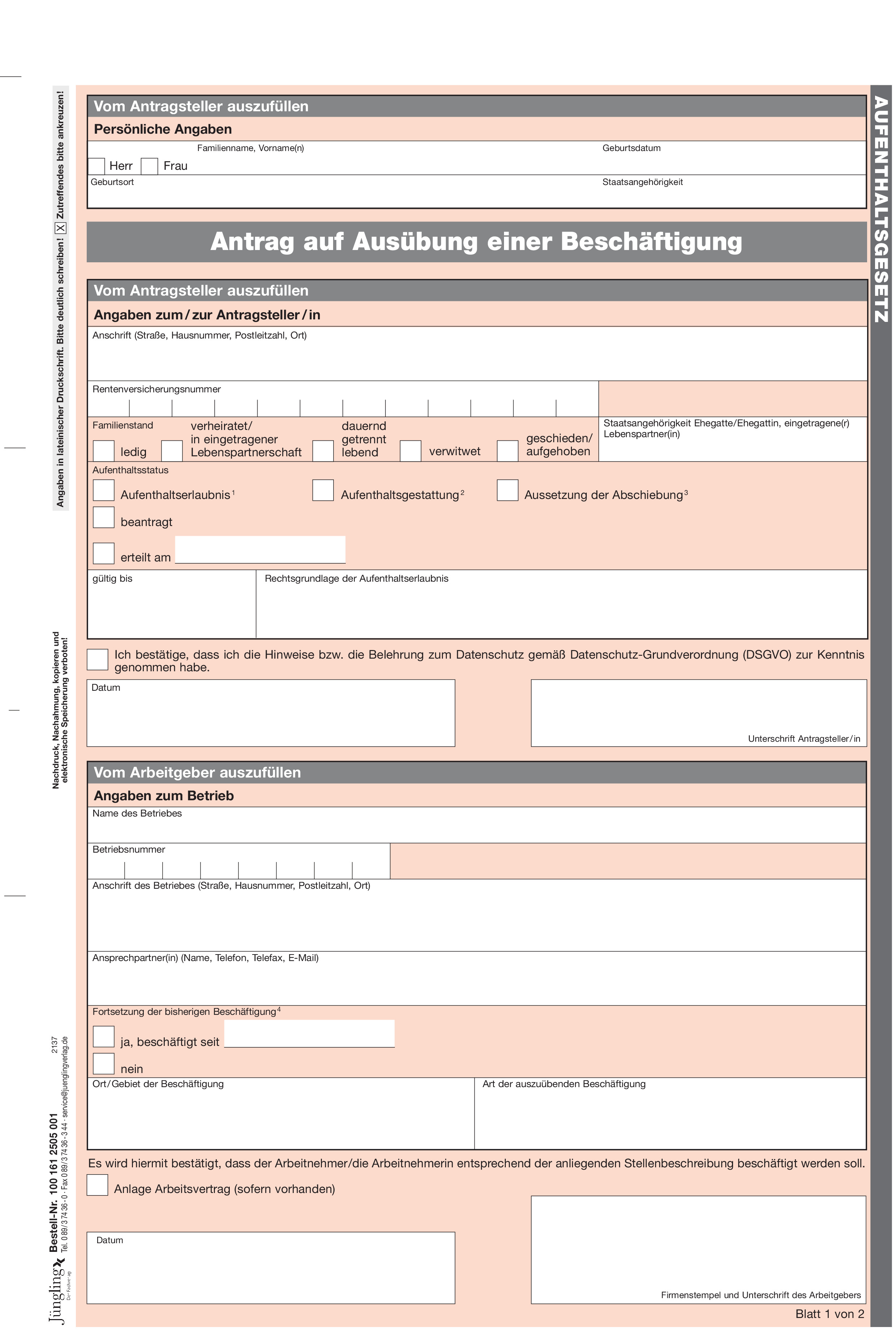 Produktinformationen "Antrag auf Ausübung einer Beschäftigung, A4"