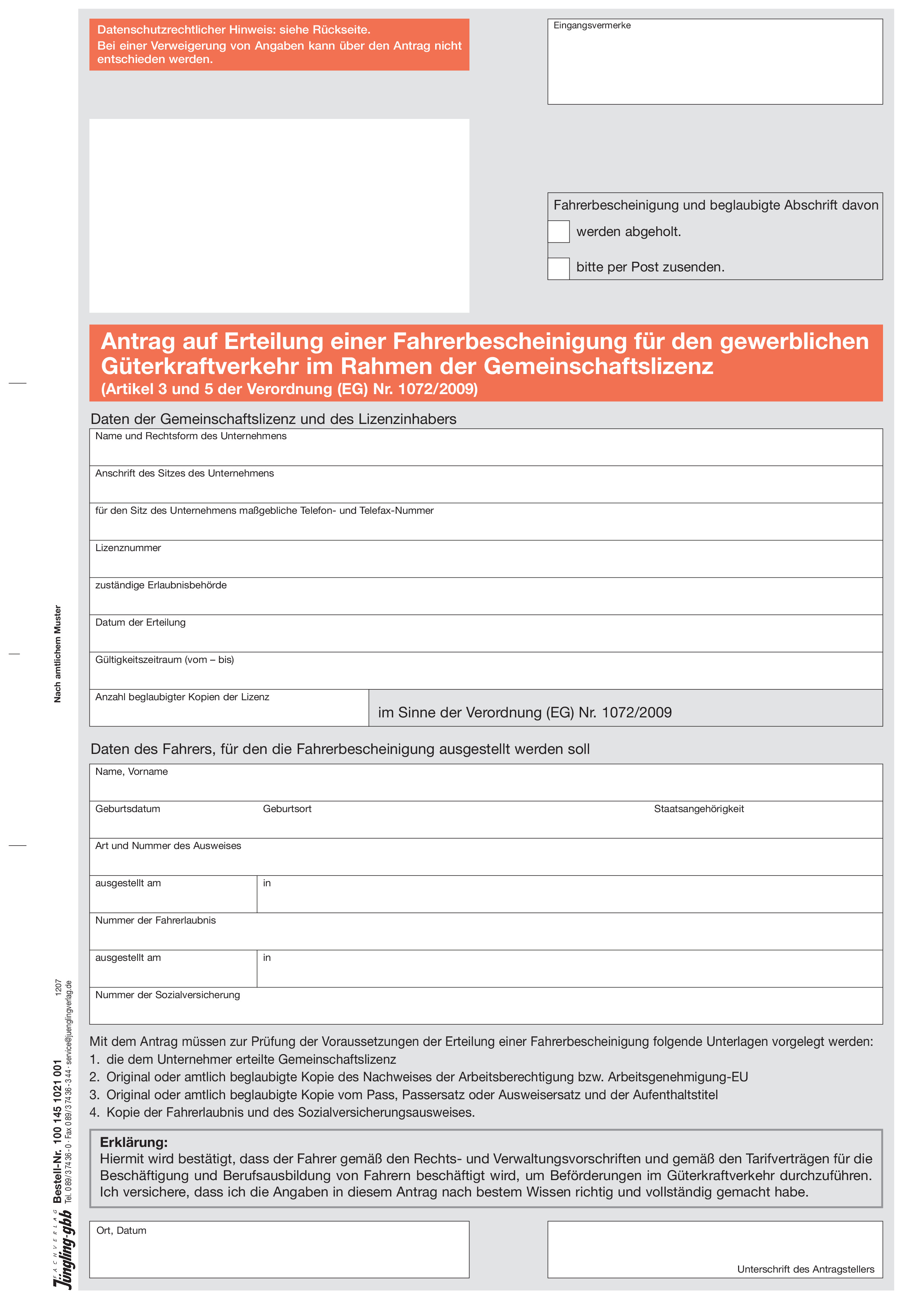 Antrag auf Erteilung einer EG-Fahrerbescheinigung