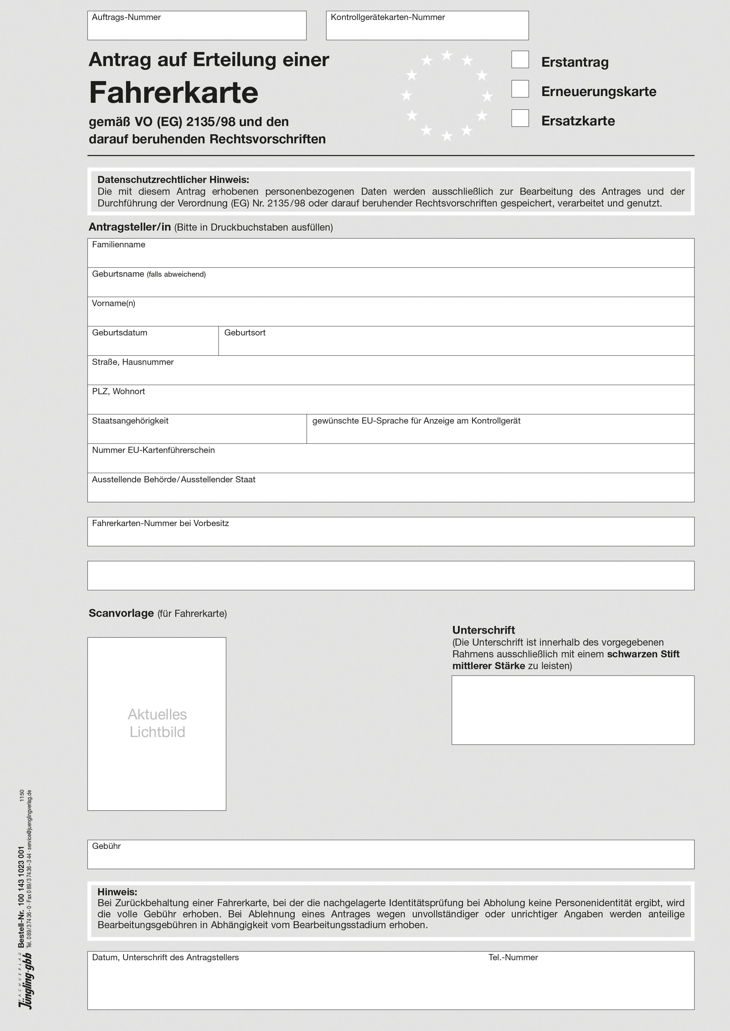 Antrag auf Erteilung einer Fahrerkarte, DIN A4