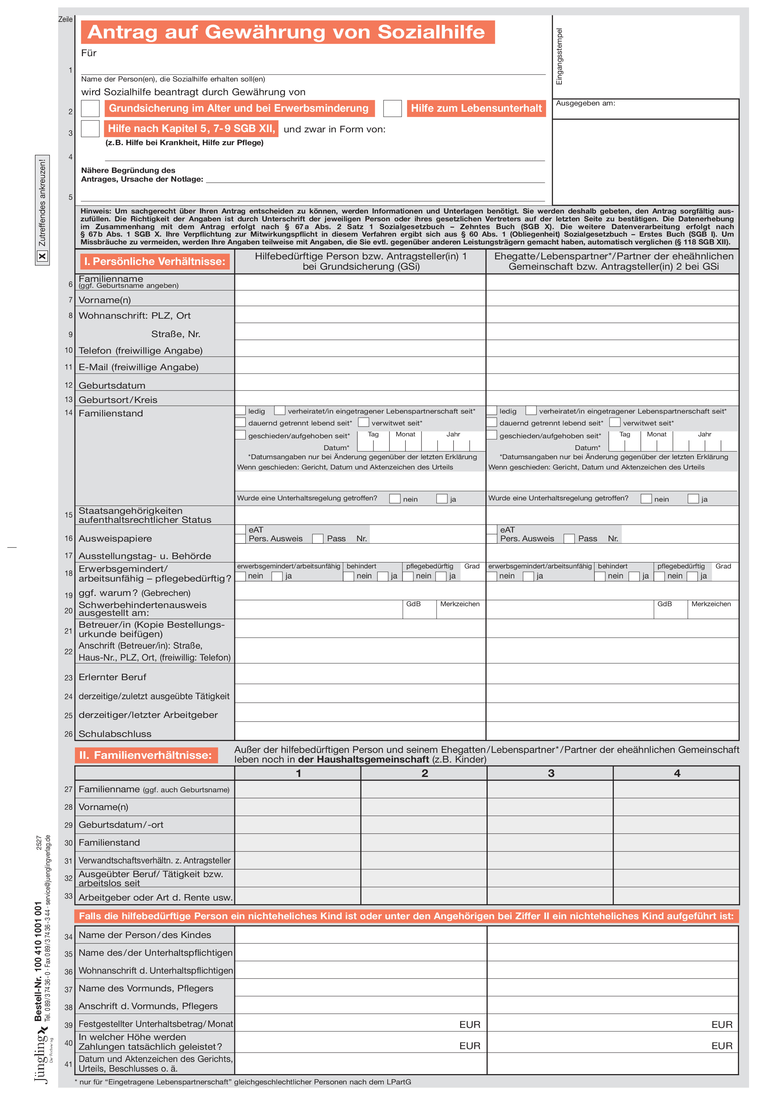 Antrag auf Gewährung von Sozialhilfe, A4, 4-seitig