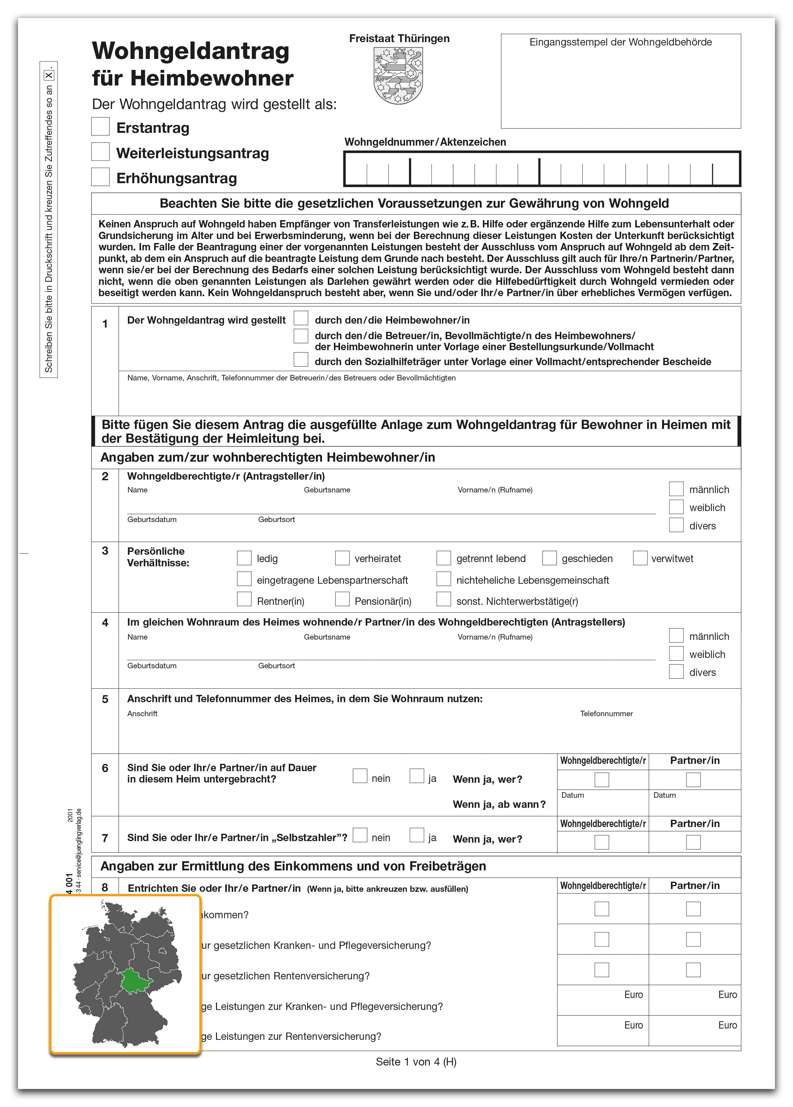 Antrag auf Gewährung von Wohngeld für Heimbewohner Thüringen