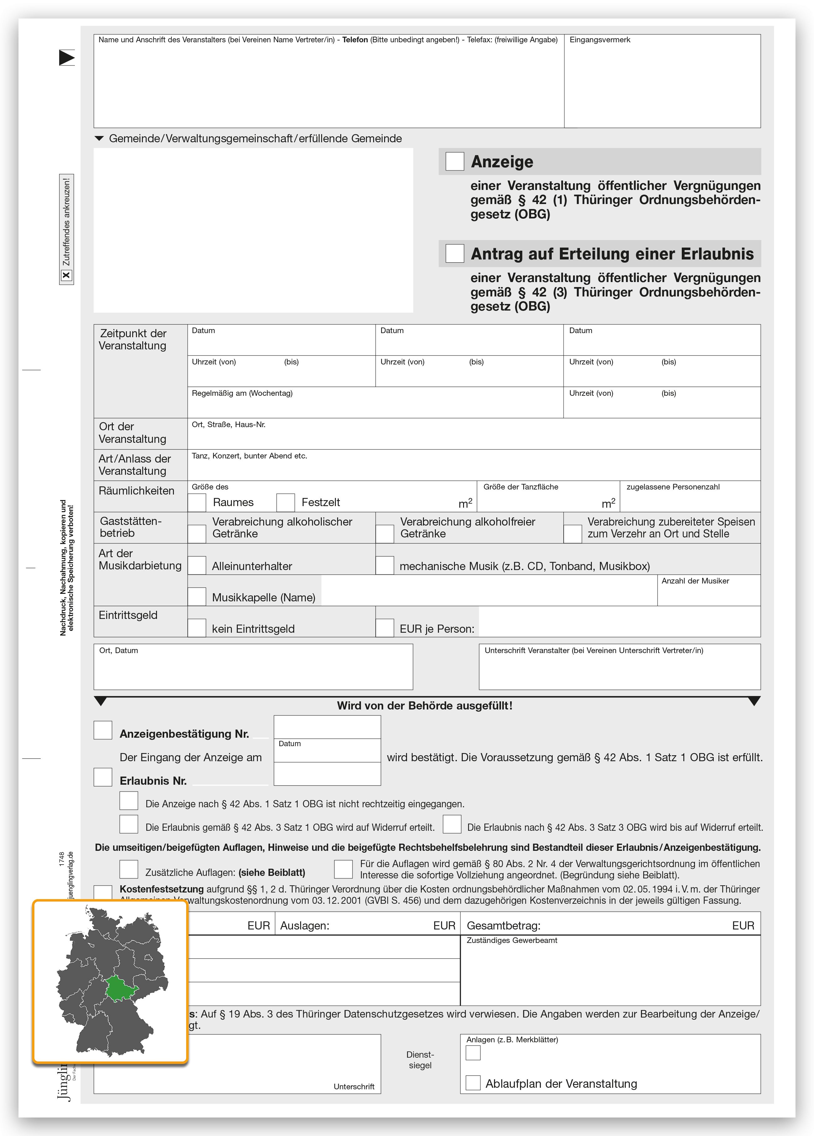 Produktinformationen "Anzeige einer öffentlichen Veranstaltung (Thüringen), A4 4-fach"