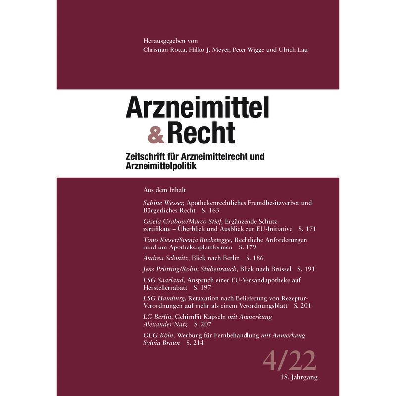 Arzneimittel Recht - Zeitschrift für Arzneimittelrecht und Arzneimittelpolitik - Abonnement