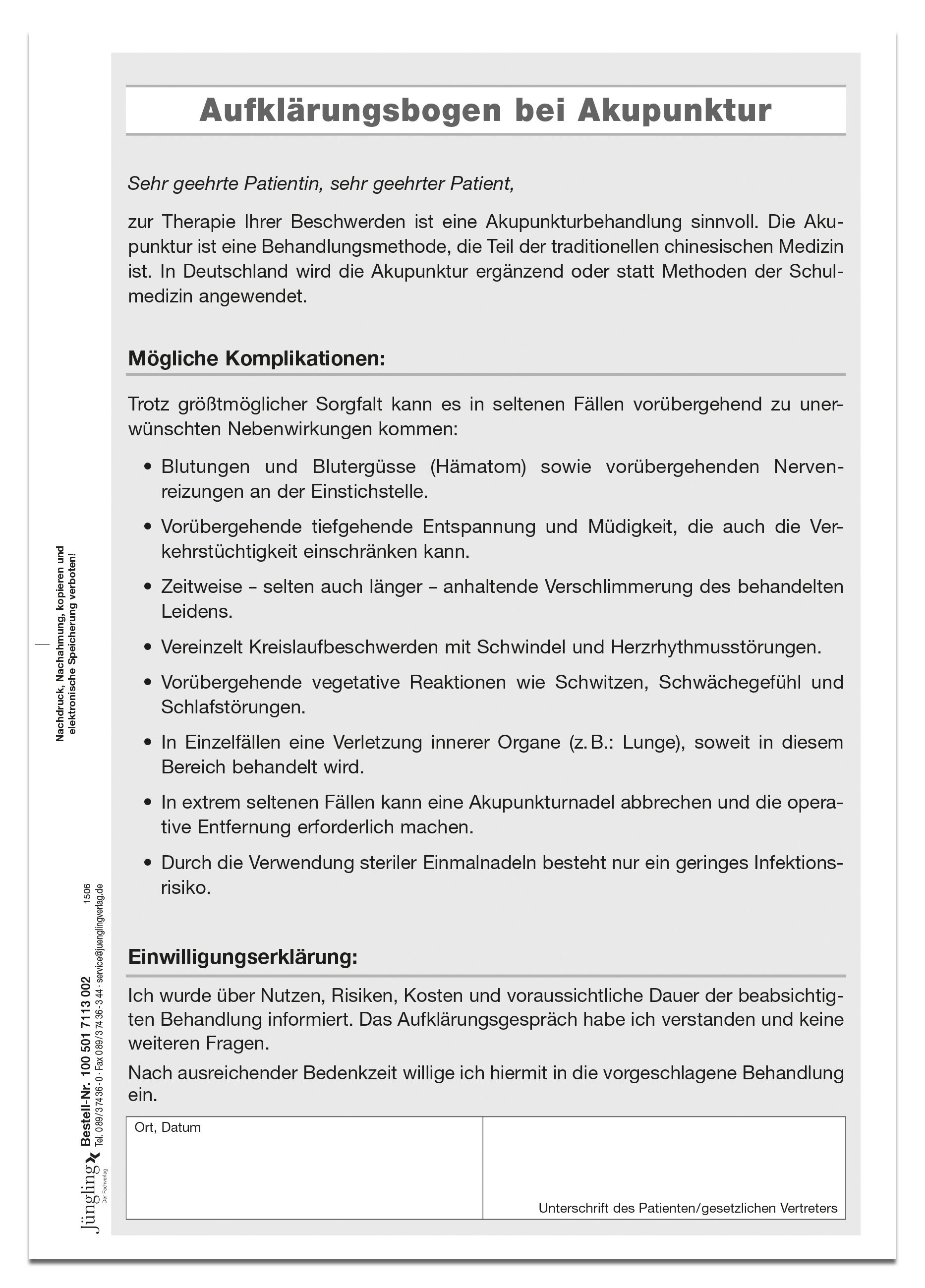 Produktinformationen "Aufklärungsbogen Akupunktur, 2-fach selbstdurchschreibend"