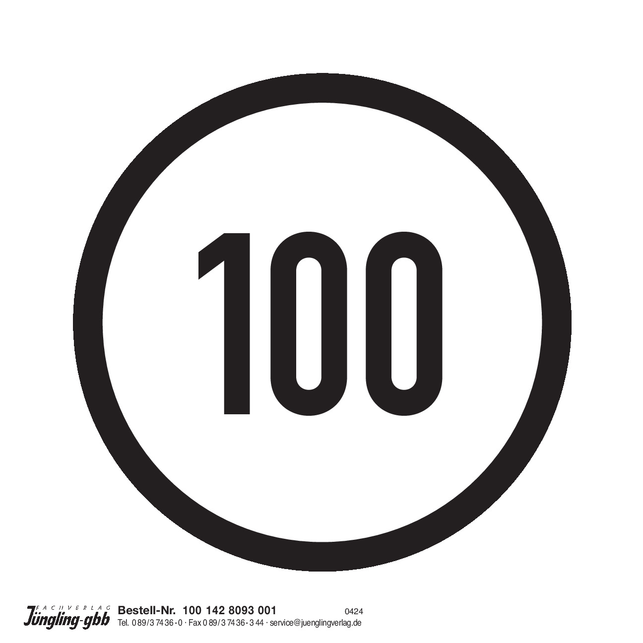 Das Geschwindigkeitsschild ist kreisrund mit einem schwarzen Rand. Die Ziffern sind auf weißem Grund in schwarzer fetter Engschrift. Der Aufkleber hat einen Durchmesser von 80 mm und besteht aus PVC-Folie. Er ist speziell für den Innenraum von Zugfahrzeugen konzipiert, um Geschwindigkeitsbegrenzungen anzuzeigen.