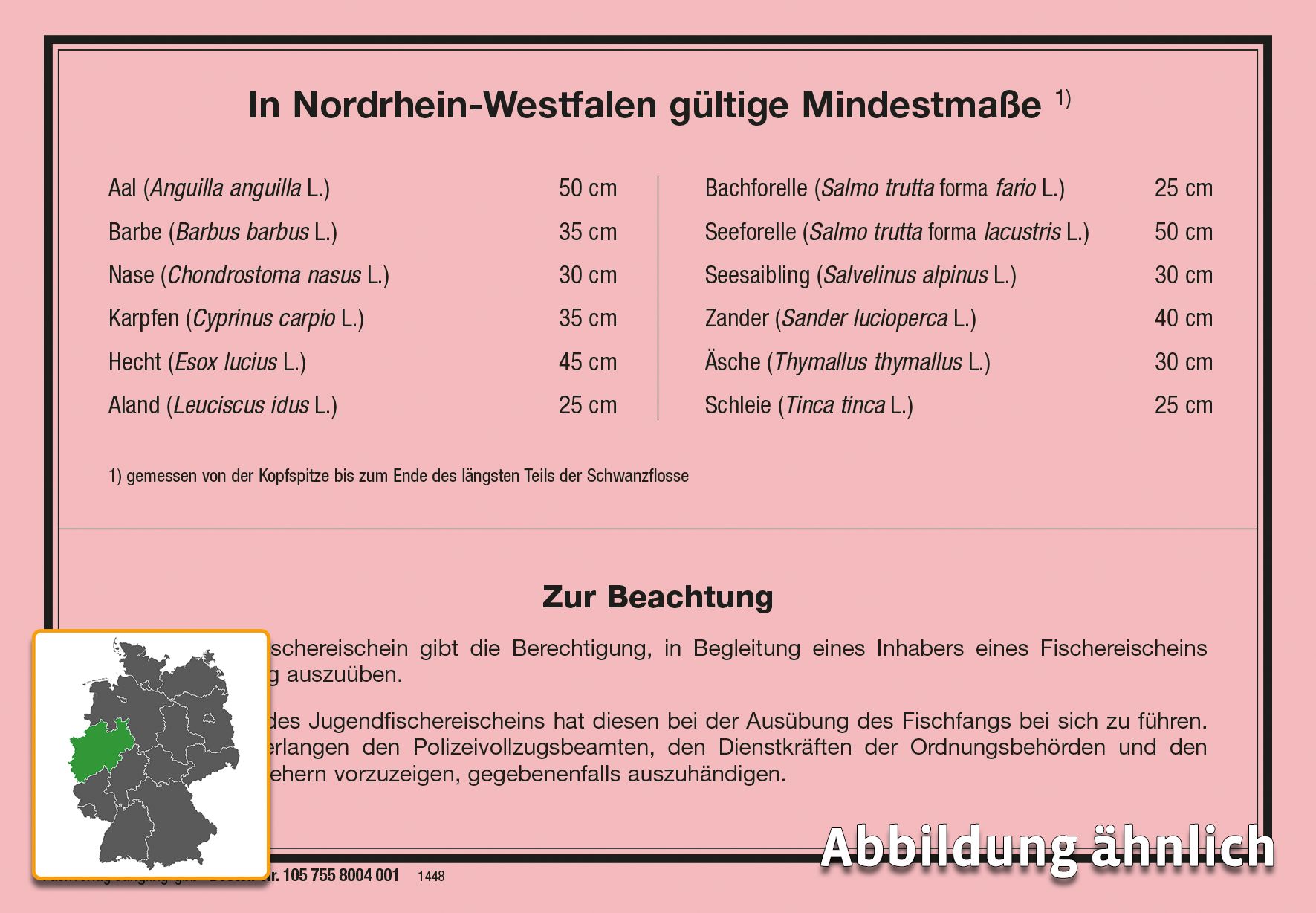 Aufkleber - Jugendfischereischein Mindestmaße NRW, 146 x 100 mm, rot