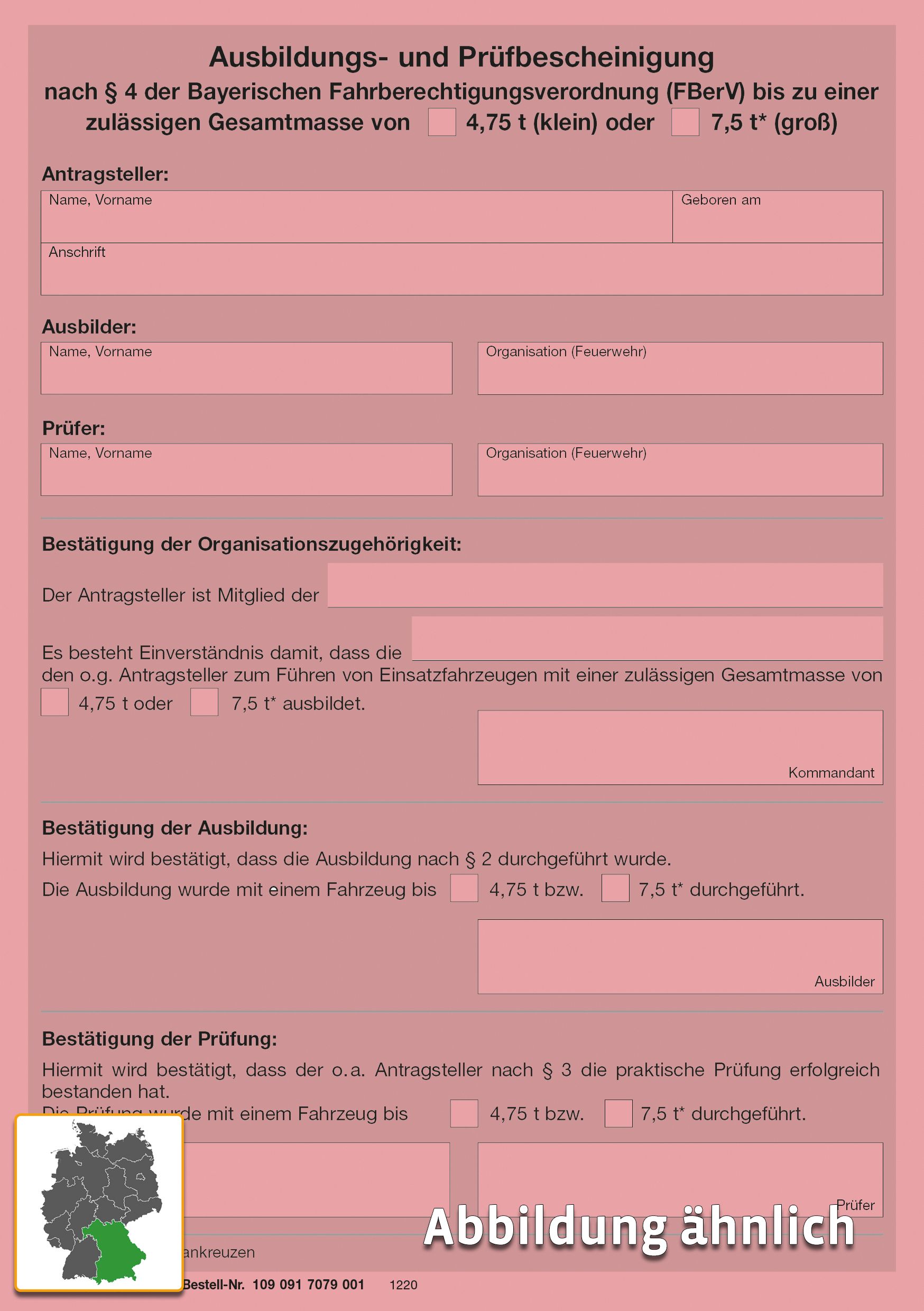 Ausbildungs- und Prüfbescheinigung bis 4, 75 t / 7, 5 t (BY) in Rosa, DIN A5