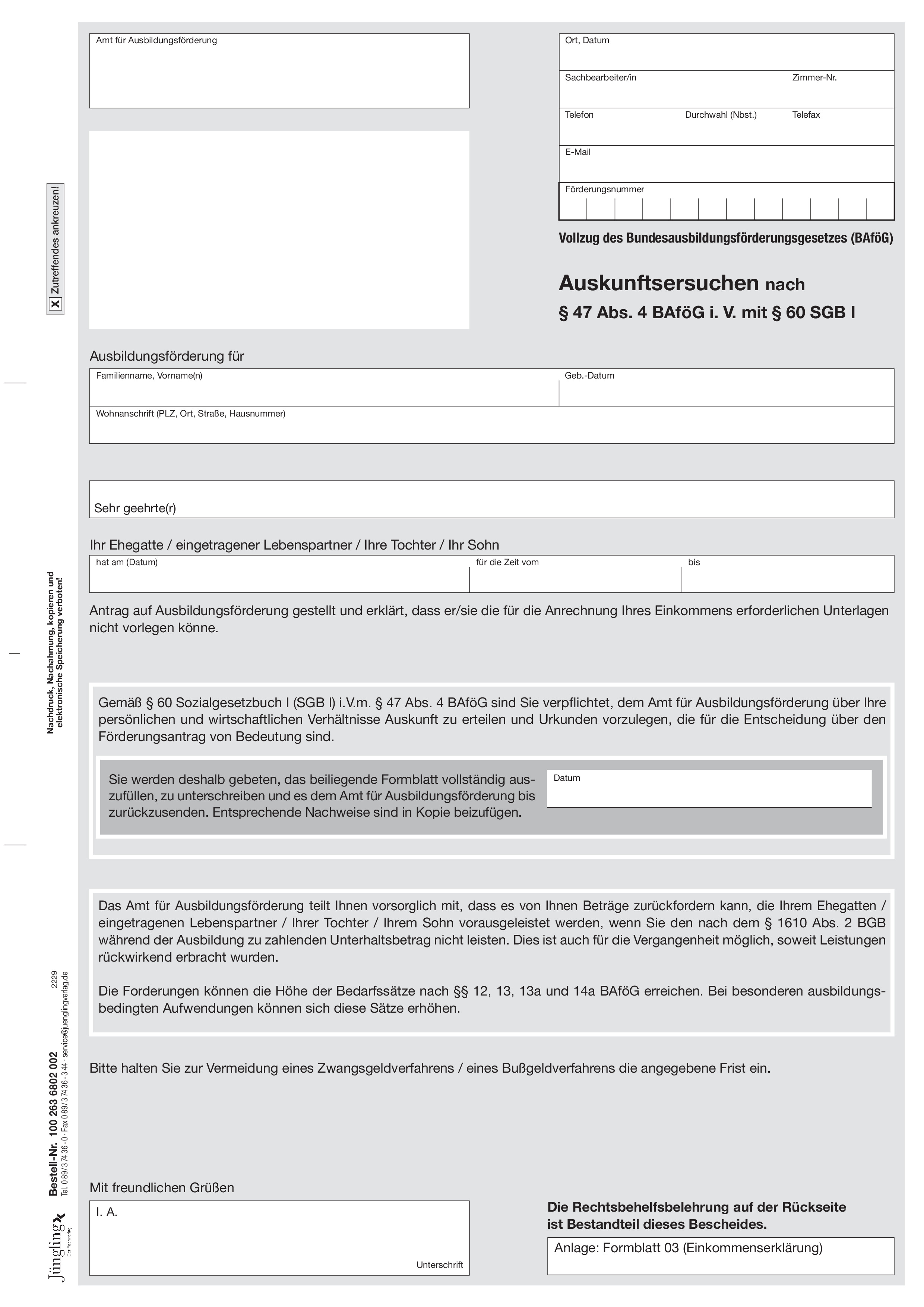 Produktinformationen "Auskunftsersuchen nach § 47 BAföG, A4 2-fach"