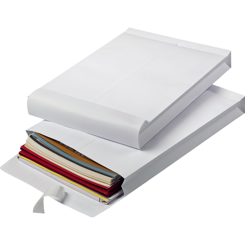 BONG Versandtasche DIN B4 mit Seitenfalte und 40 mm Stehboden, ohne Fenster, weiß, Pack: 100 Stück