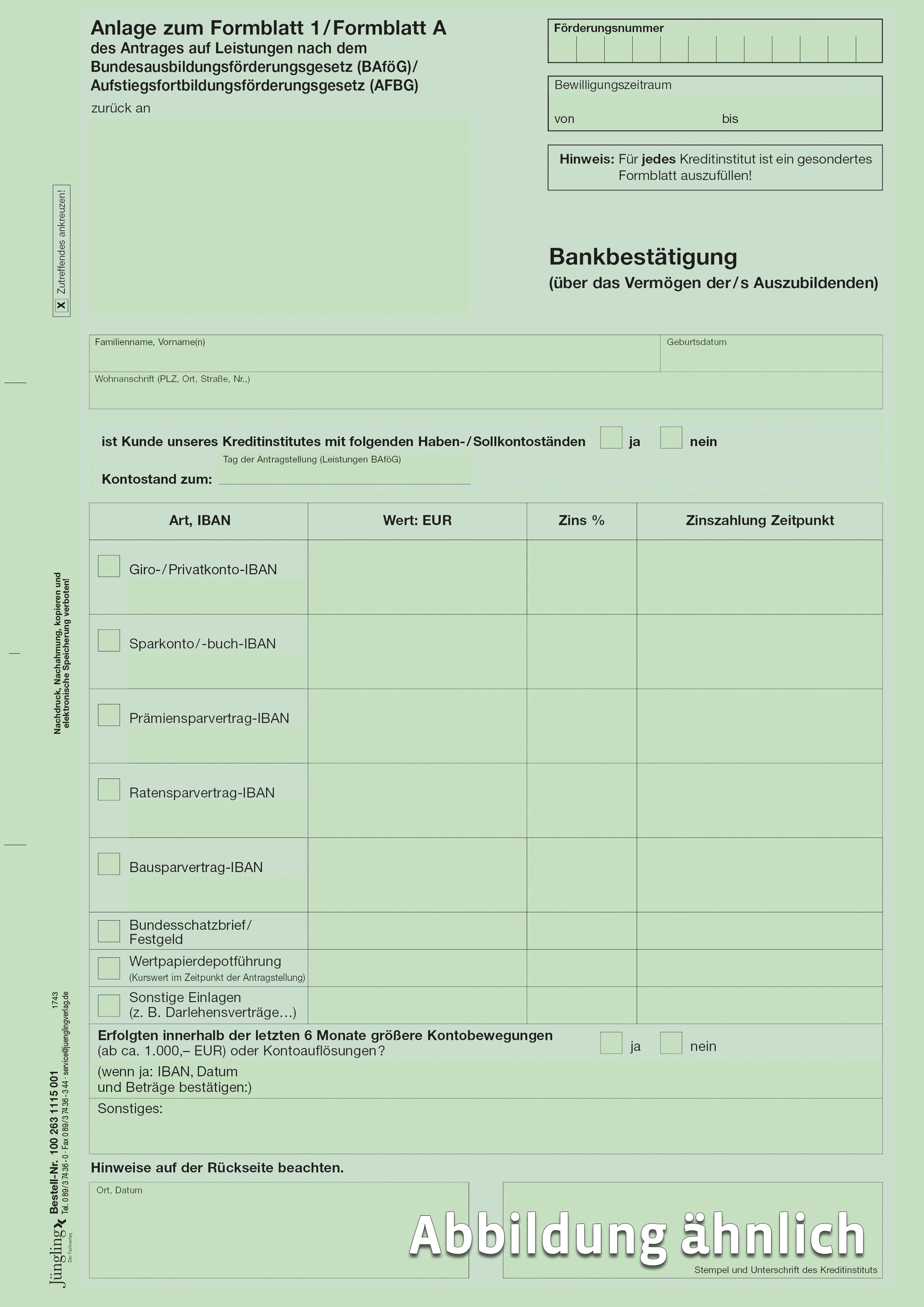 Produktinformationen "Bankbestätigung über das Vermögen des Auszubildenden (BAföG/AFBG)"