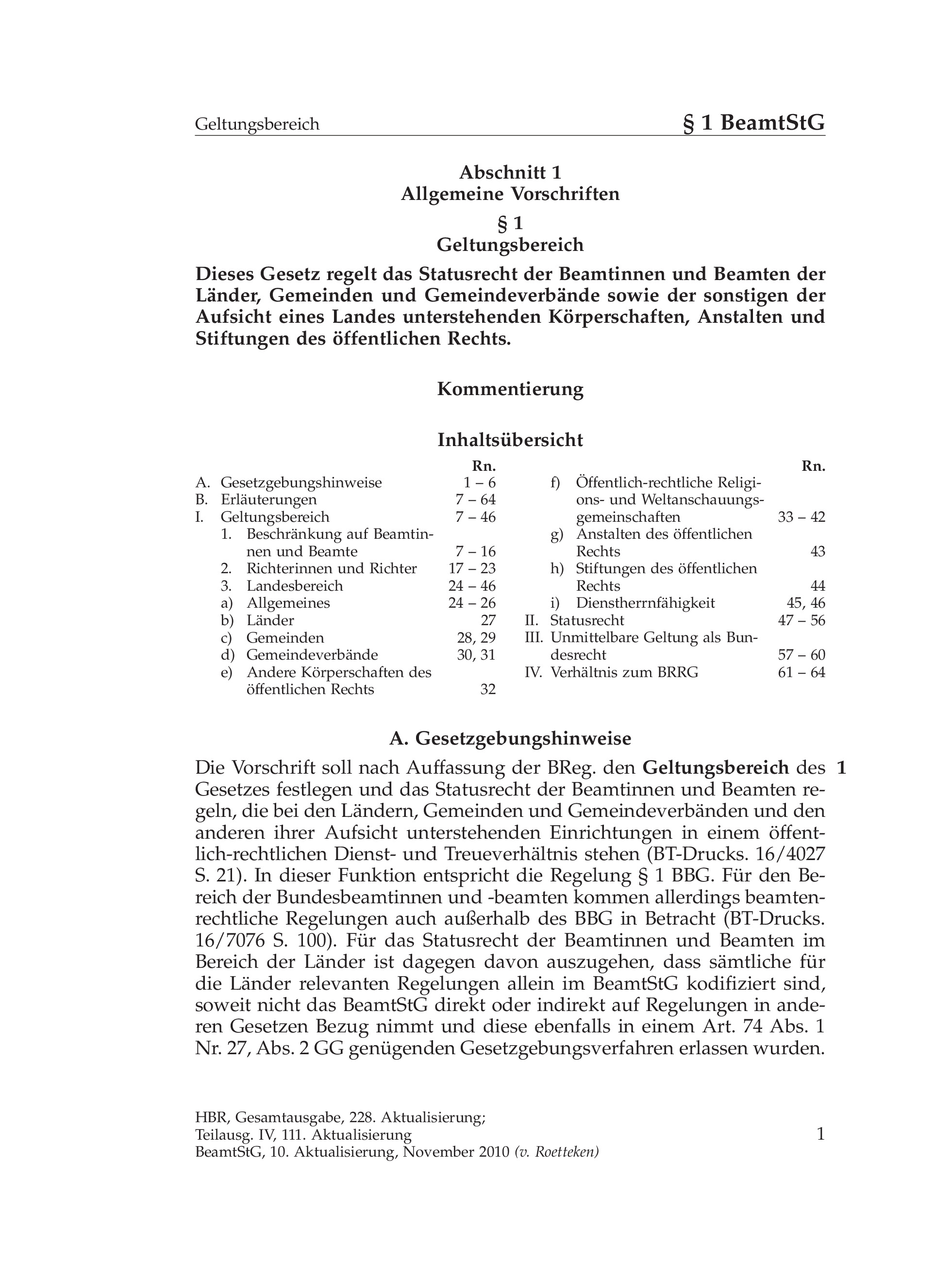 - Geltungsbereich des Beamtenstatusgesetzes,