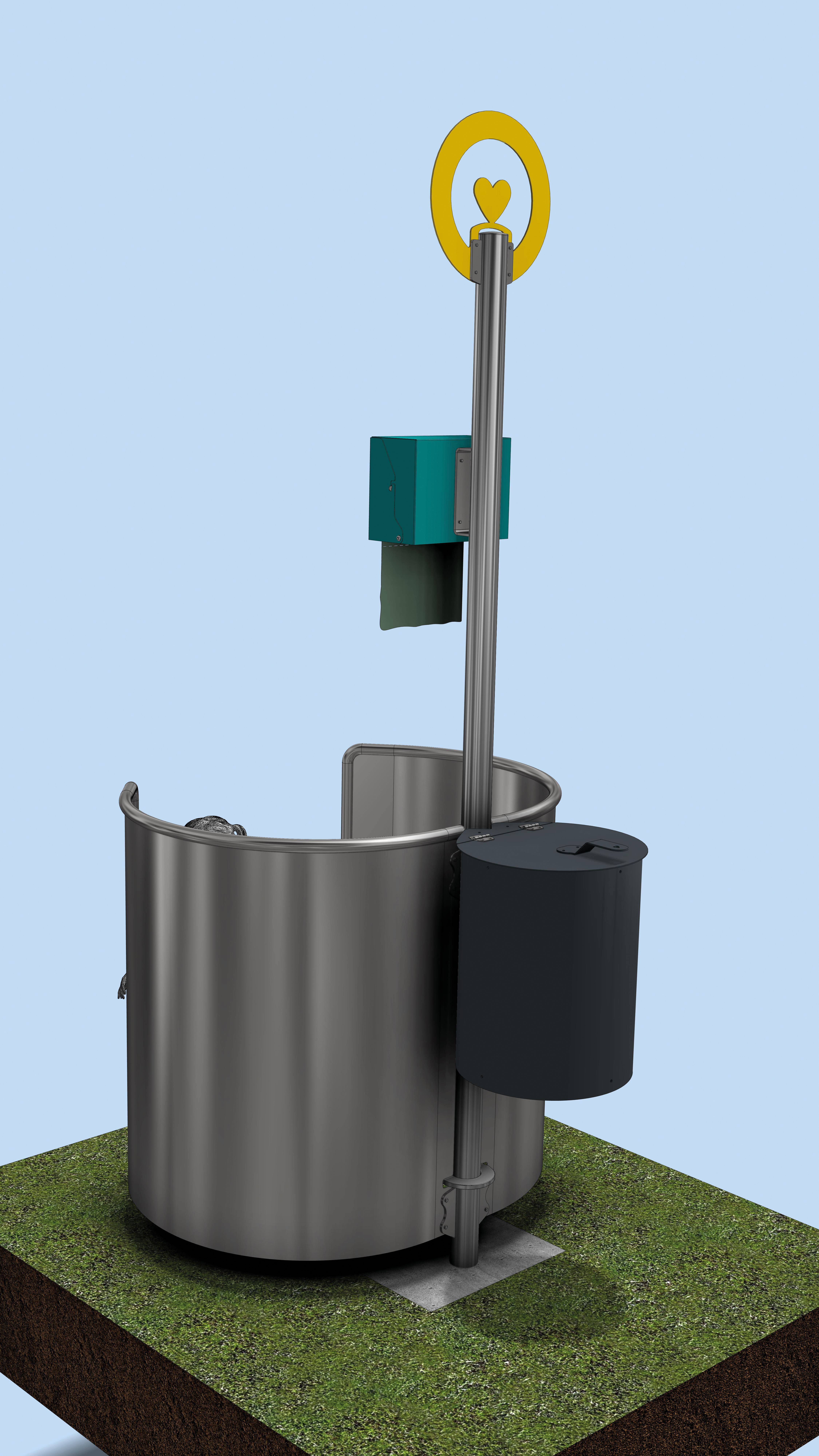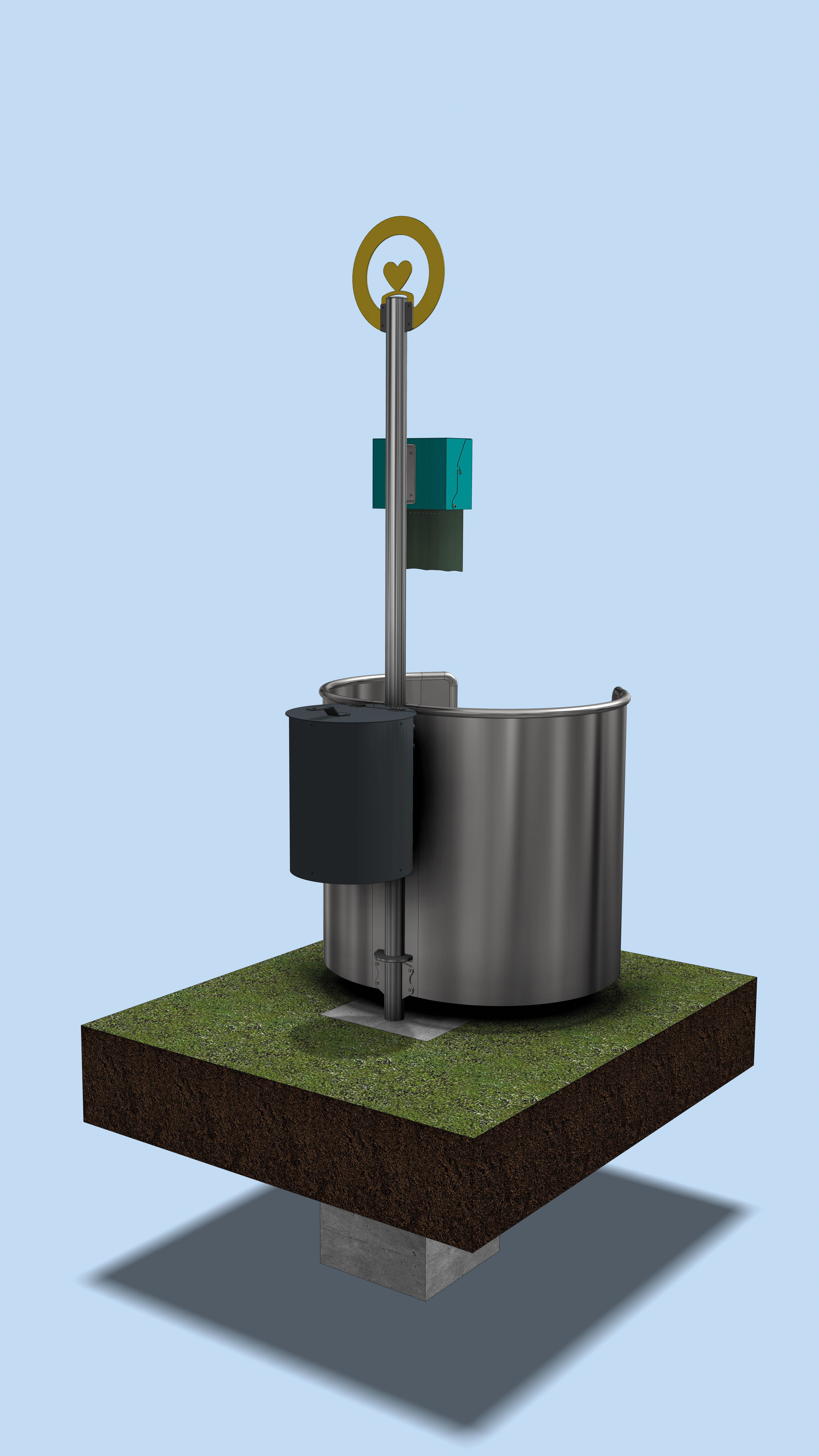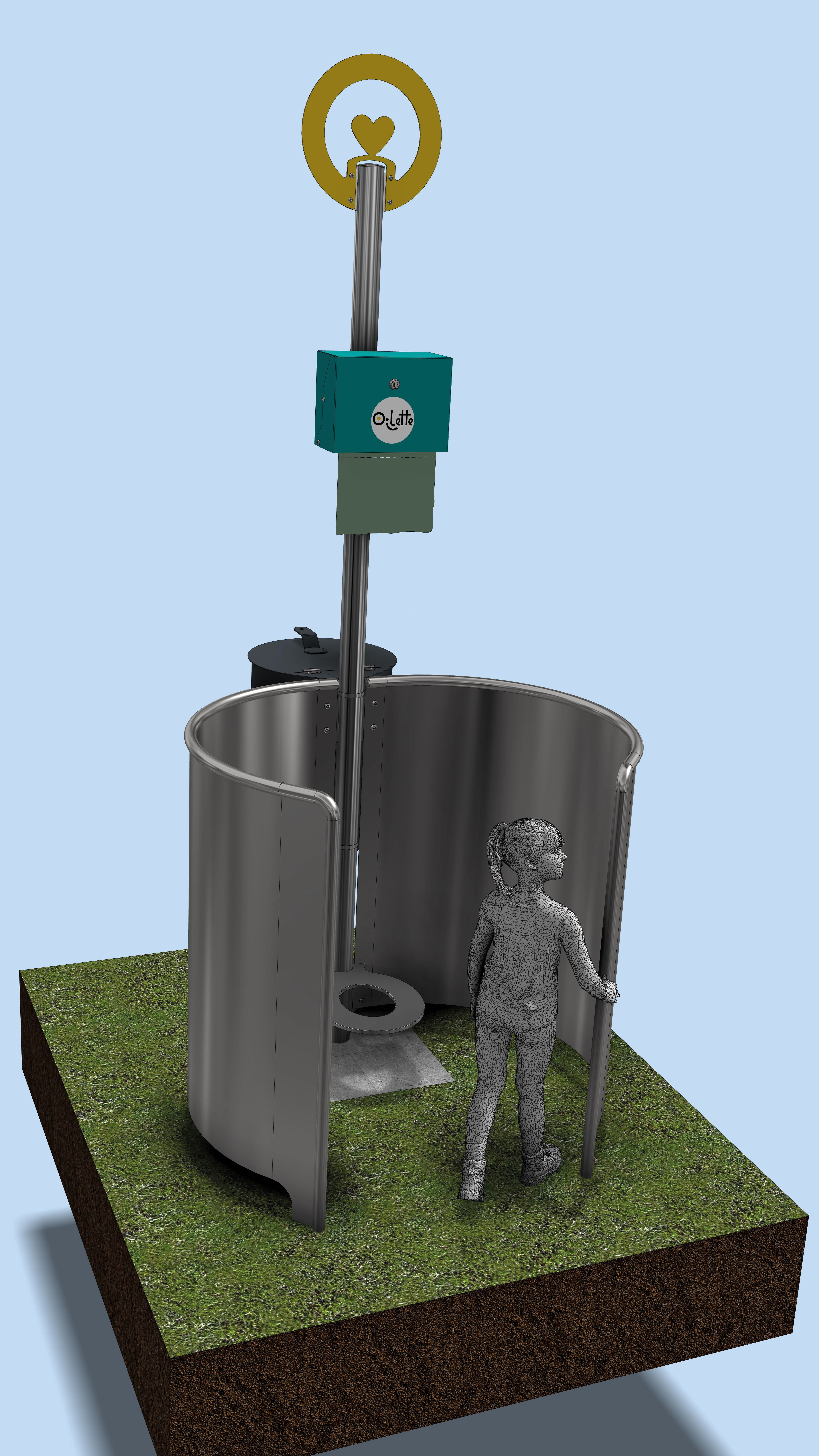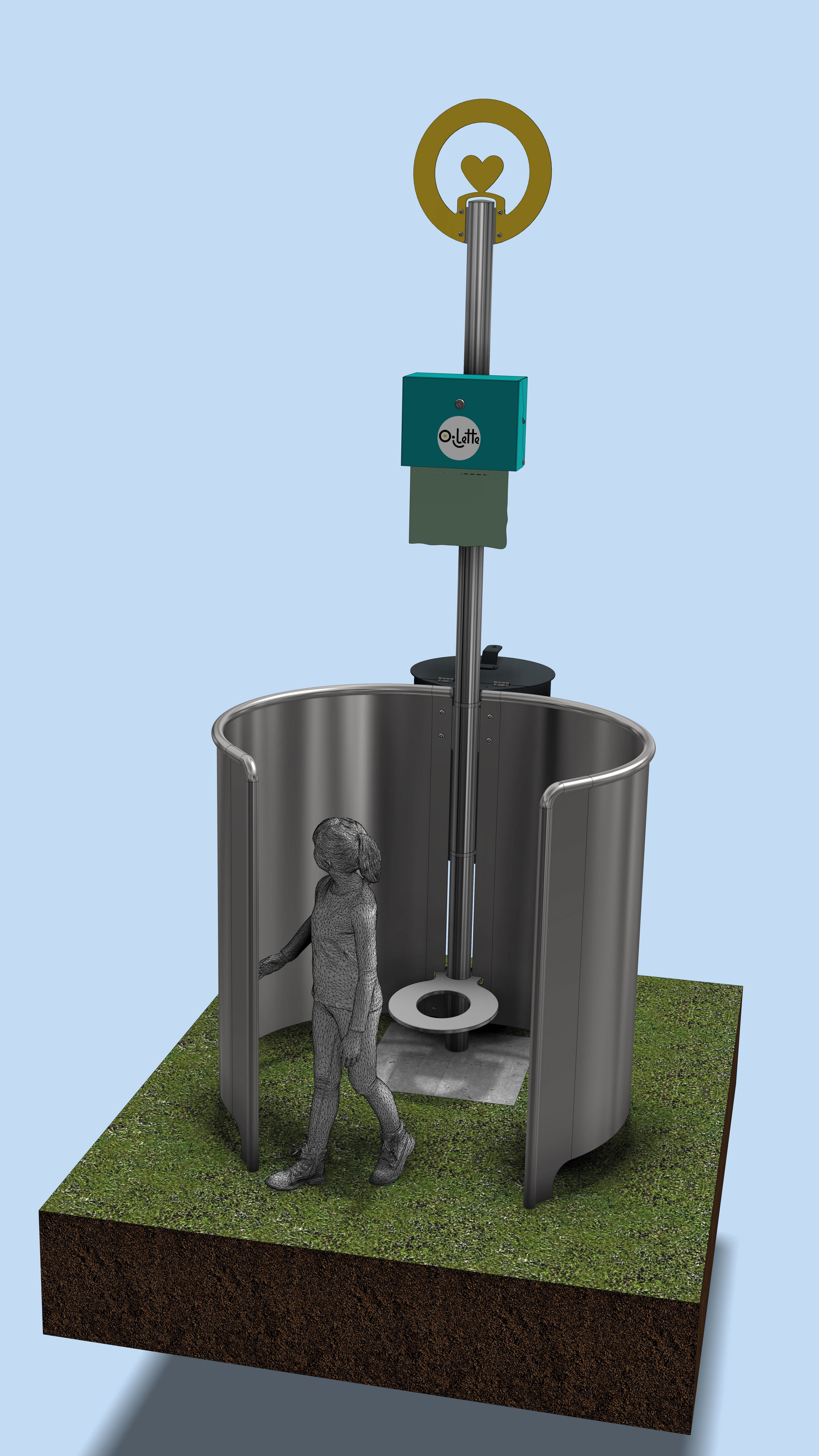 Der beidseitige, halbhohe Sichtschutz für die Oilette - die platzsparende und praktische Toilettenlösung auf jedem Spielplatz - bietet mit seinem funktionalem Design einen geschützen Raum für Kinder. Aus langlebigem Edelstahl gefertigt wird das Risiko für Vandalismus minimiert.