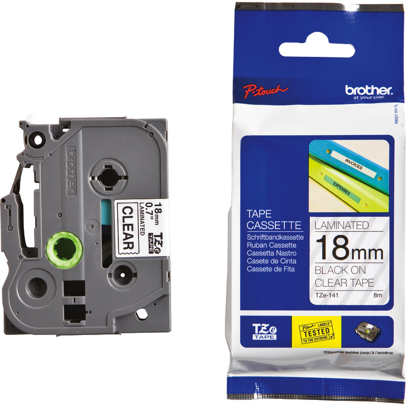 Brother TZE-141 Schriftbandkassette P-Touch, 18 mm, schwarz/transparent