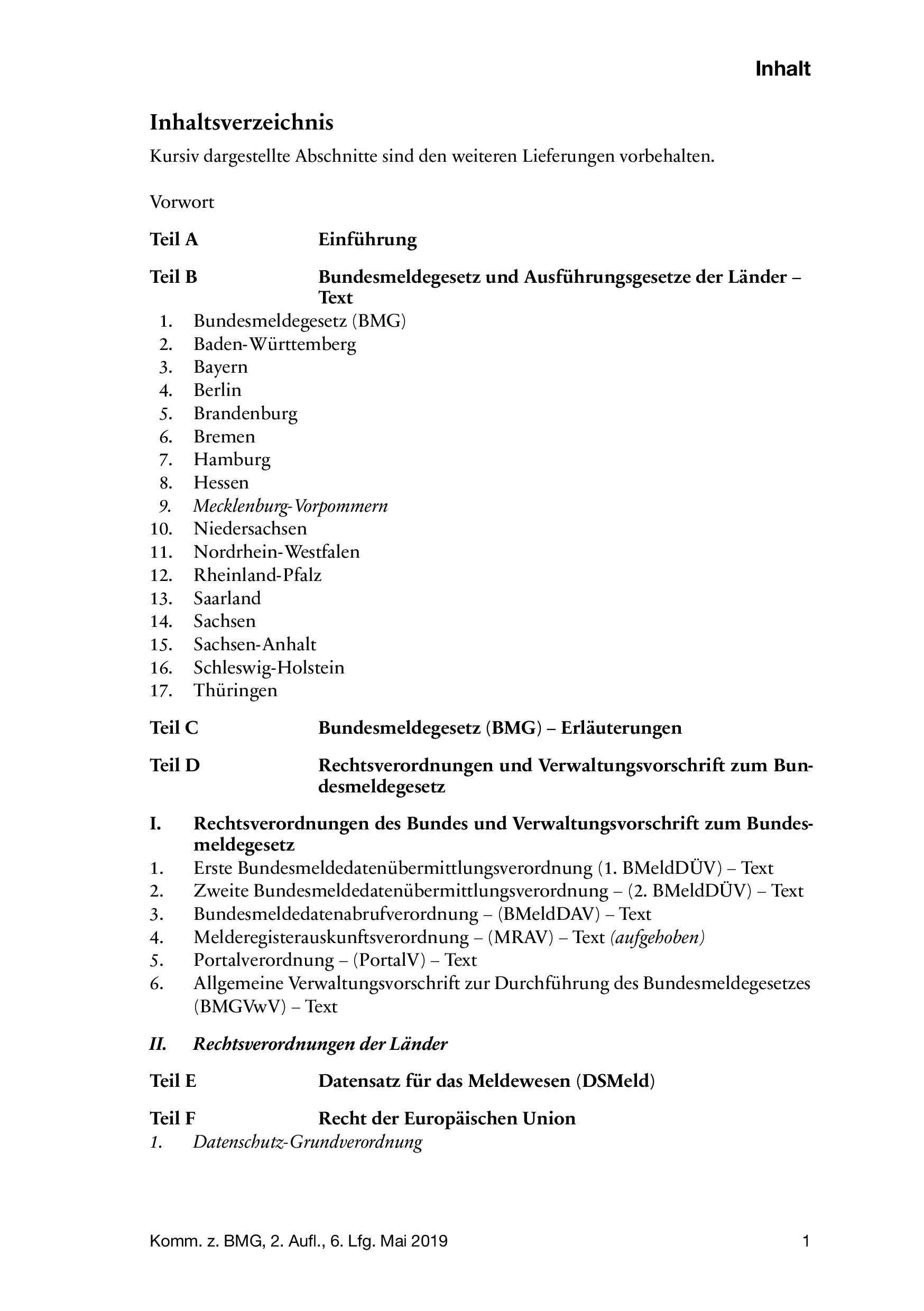 So enthält es neben einer umfangreichen Einführung in das Meldewesen die Kommentierung des Bundesmeldegesetzes, die dazugehörige Verwaltungsvorschrift sowie die Rechtsverordnungen zum Bundesmeldegesetz.