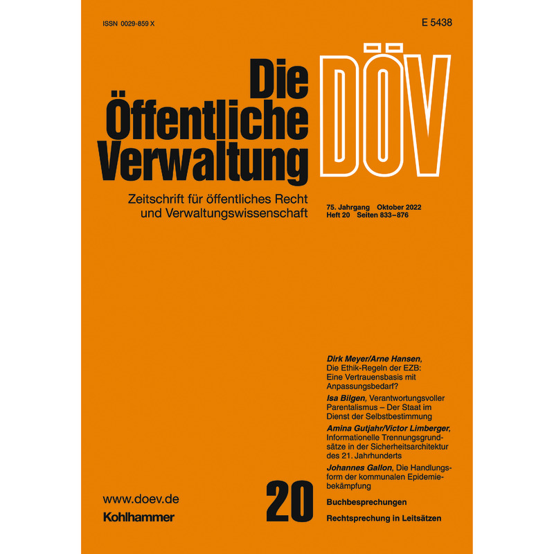 Die DÖV ist eine zweimal im Monat erscheinende Fachzeitschrift für öffentliches Recht mit Bezügen auch zu europäischem und außereuropäischem Recht.