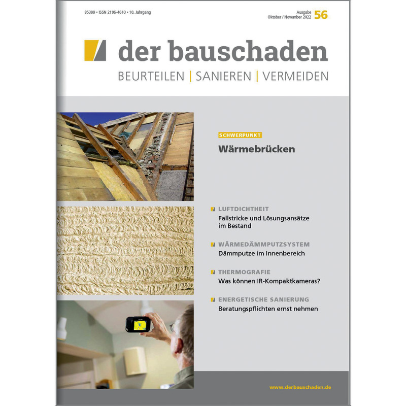 Schadensbeispiele aus dem Neubau und Bestand sowie aktuelle Rechtshinweise aus den Bereichen Baumängel, Haftung oder Gewährleistung runden jede Ausgabe ab.