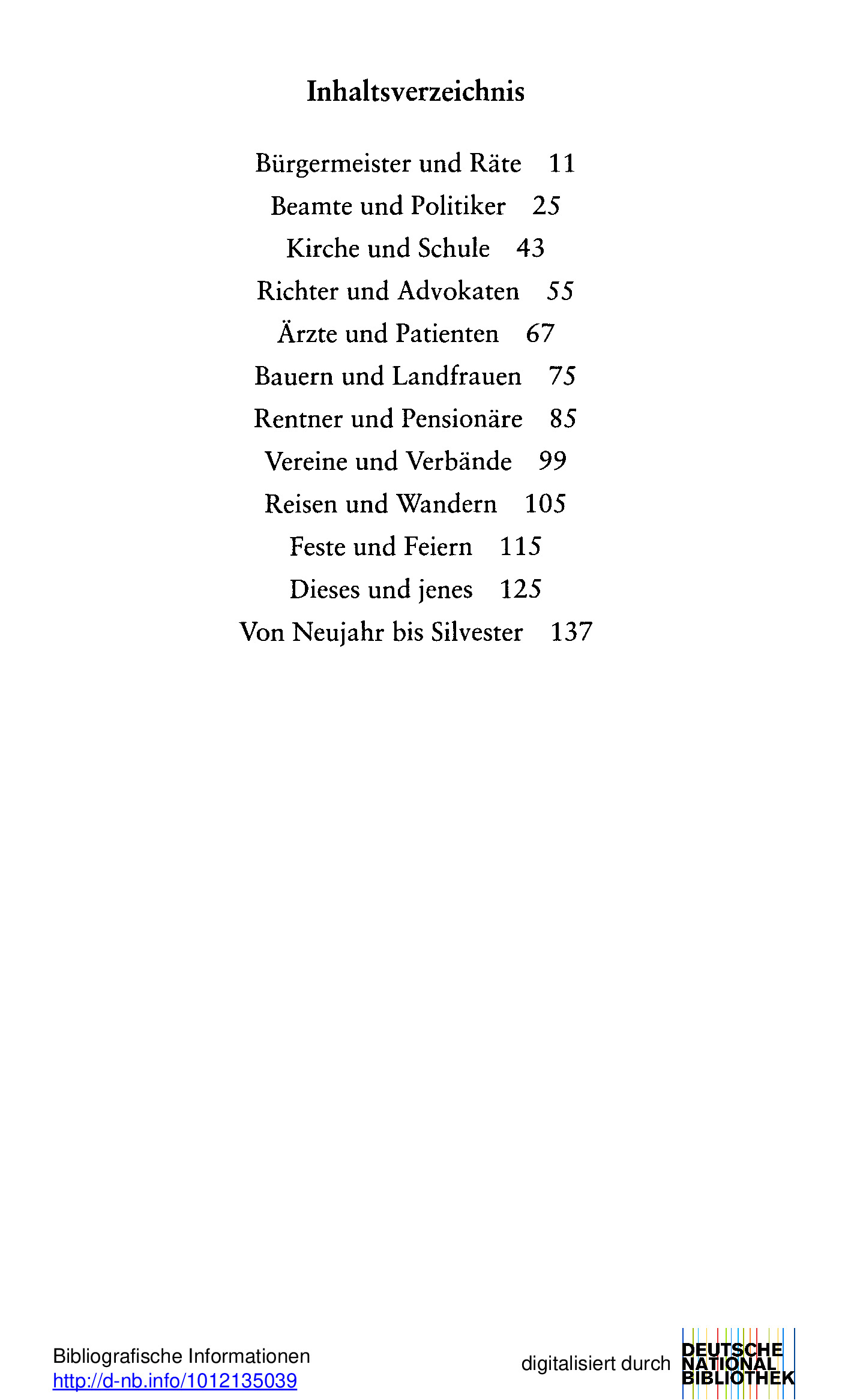 “Die dritte Amtsglocke” eignet sich als ideales Präsent für Angehörige des Öffentlichen Dienstes, für ehrenamtlich tätige Mandatsträger, für Vereinsvorsitzende und letztlich für alle Bürgerinnen und Bürger, die einmal herzhaft lachen oder auch nur still schmunzeln wollen. In 13 Kapiteln kann mühelos das Passende für den jeweiligen Zweck gefunden werden: Bürgermeister und Räte, Beamte und Politiker, Kirche und Schule, Richter und Advokaten, Ärzte und Heilkundige, Bauern und Landfrauen, Rentner und Pensionisten, Vereine und Verbände, Reisen und Wandern, Feste und Feiern, Von Neujahr bis Silvester, Lebensweisheiten und Sprüche, Redensarten und Floskeln.