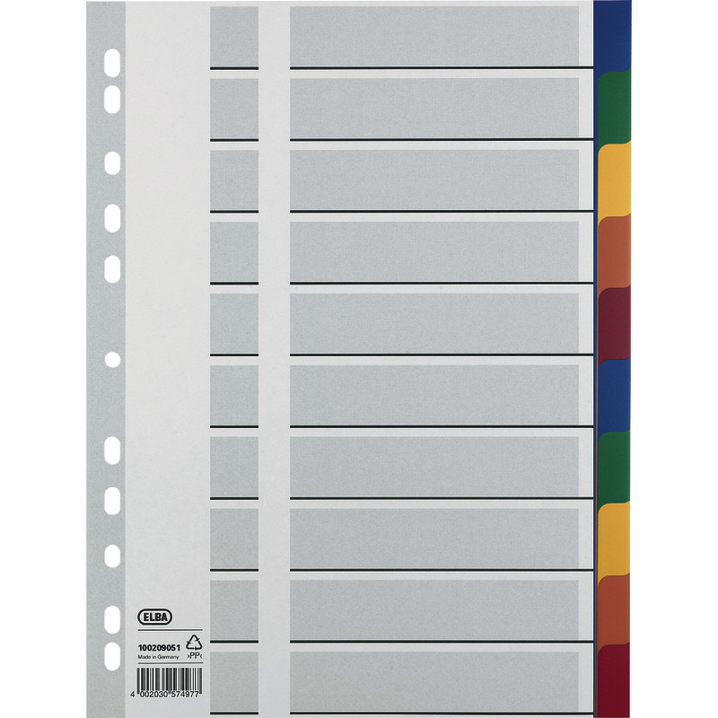 ELBA Farbige Kunststoff-Register, blanko, 10 Blatt - grau
