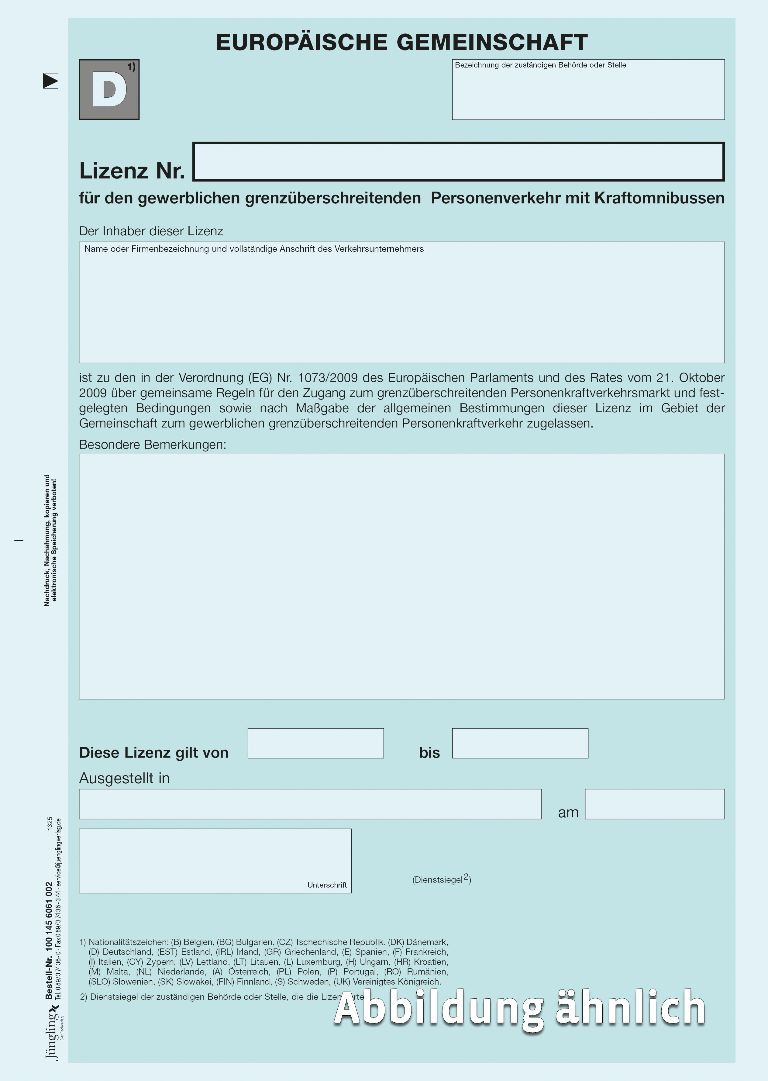 Produktinformationen "EU-Lizenz für gewerblichen grenzüberschreitenden Verkehr, 2-fach, A4"