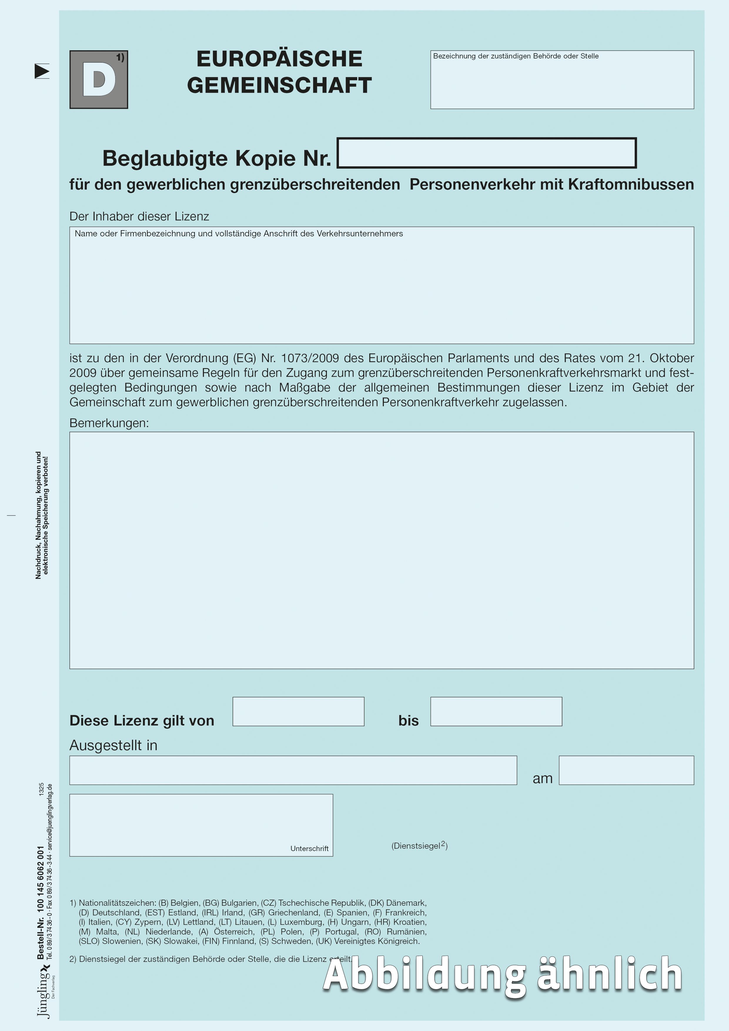 Produktinformationen "EU-Lizenz für gewerblichen grenzüberschreitenden Verkehr (beglaubigte Kopie)"