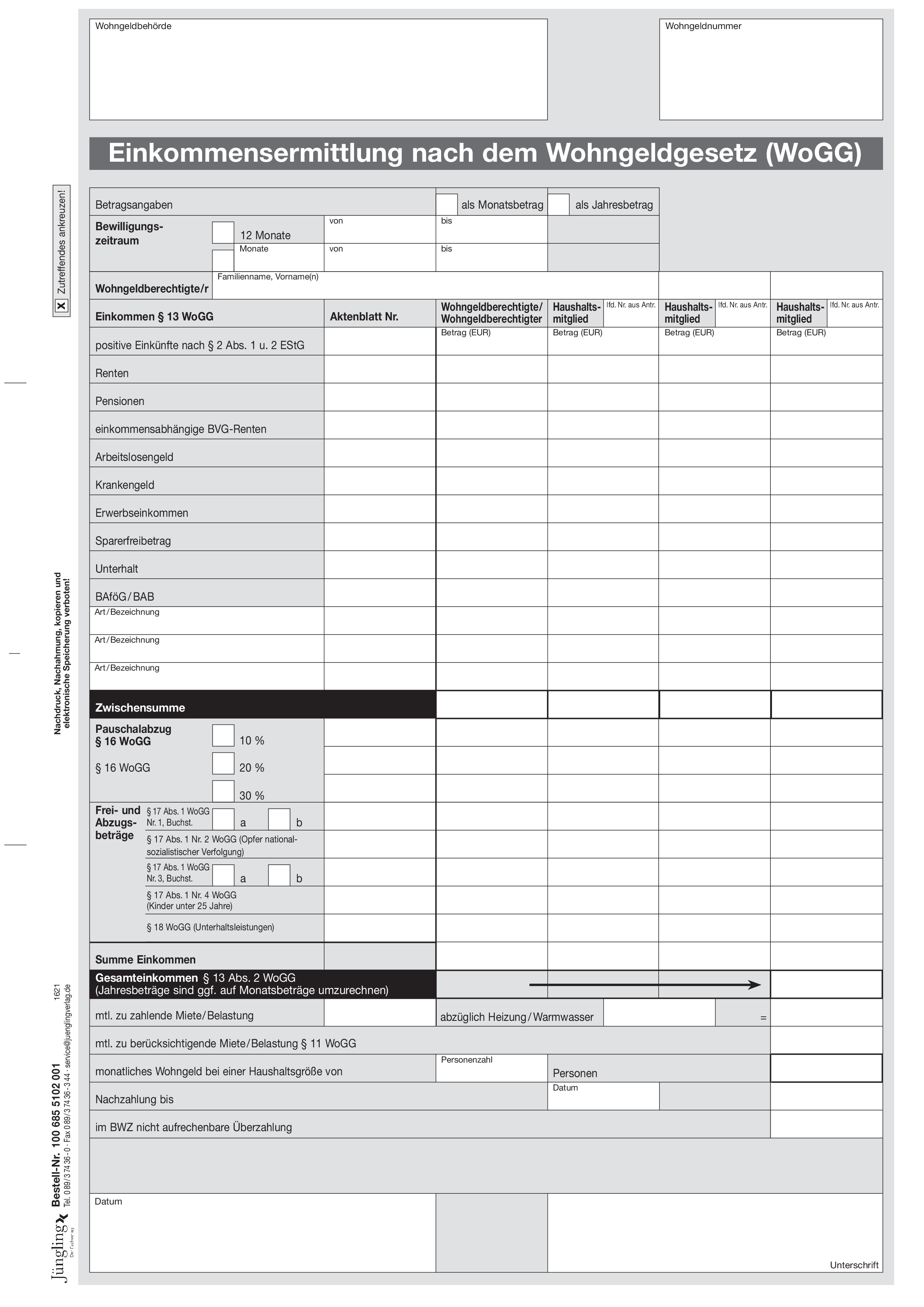 Einkommensermittlung nach dem Wohngeldgesetz, A4