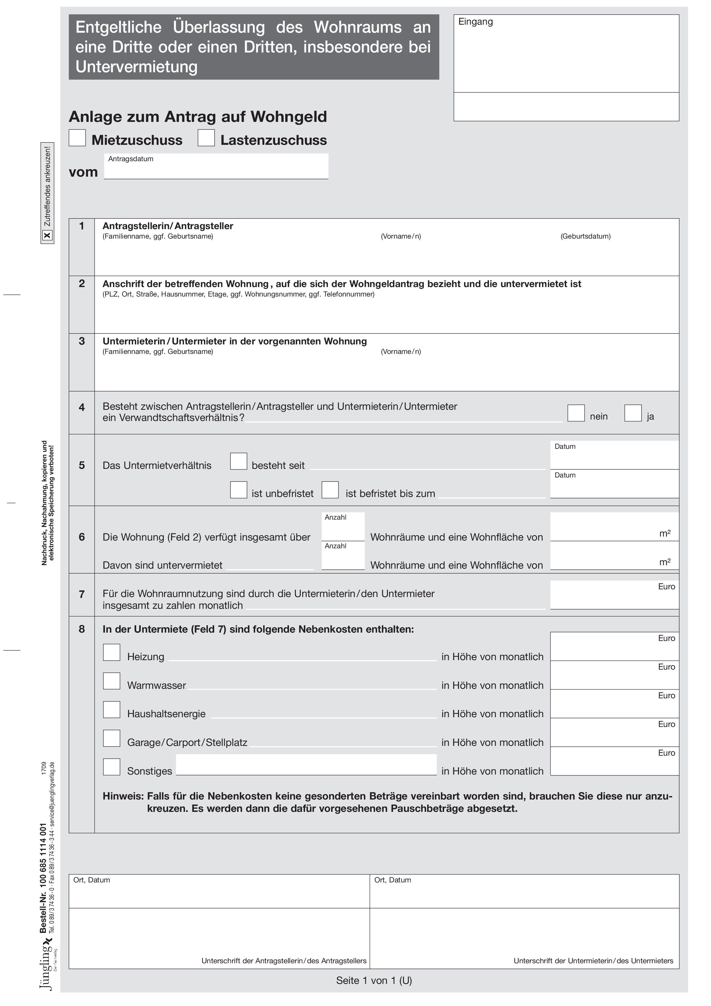 Produktinformationen "Entgeltliche Überlassung des Wohnraums, A4 Formular"