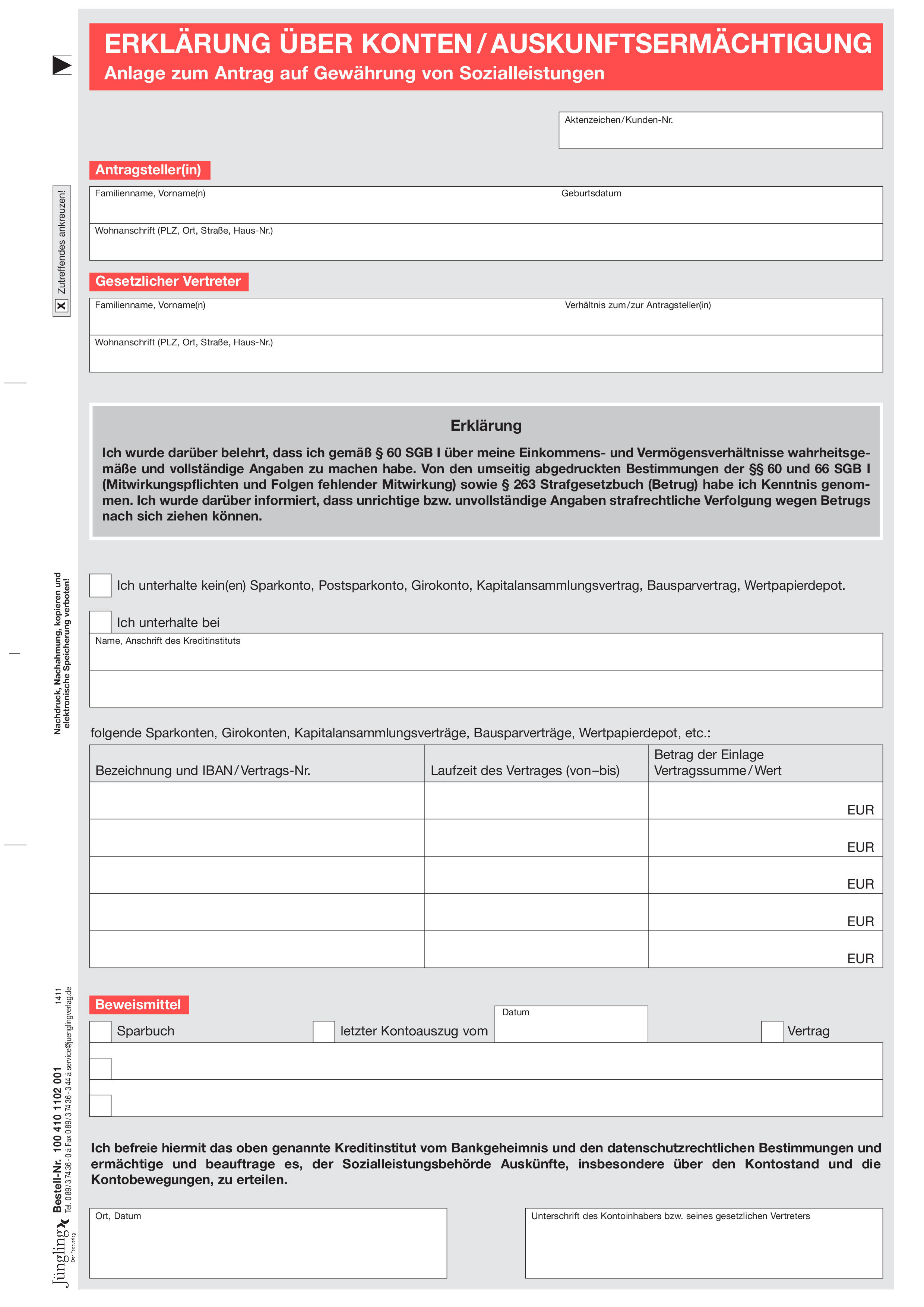 Produktinformationen "Erklärung über Konten / Auskunftsermächtigung, A4"