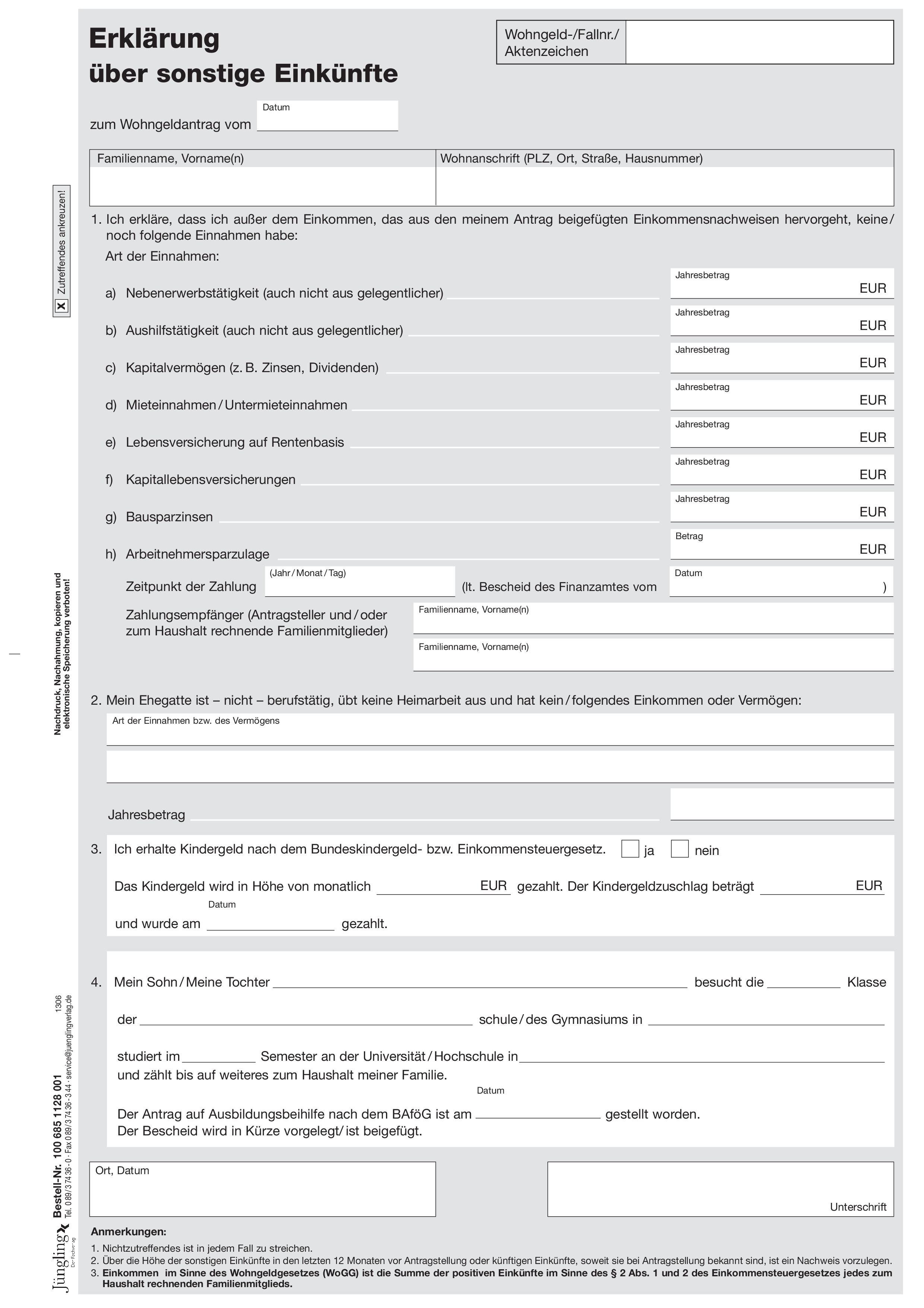 Erklärung über sonstige Einkünfte, A4, gelocht